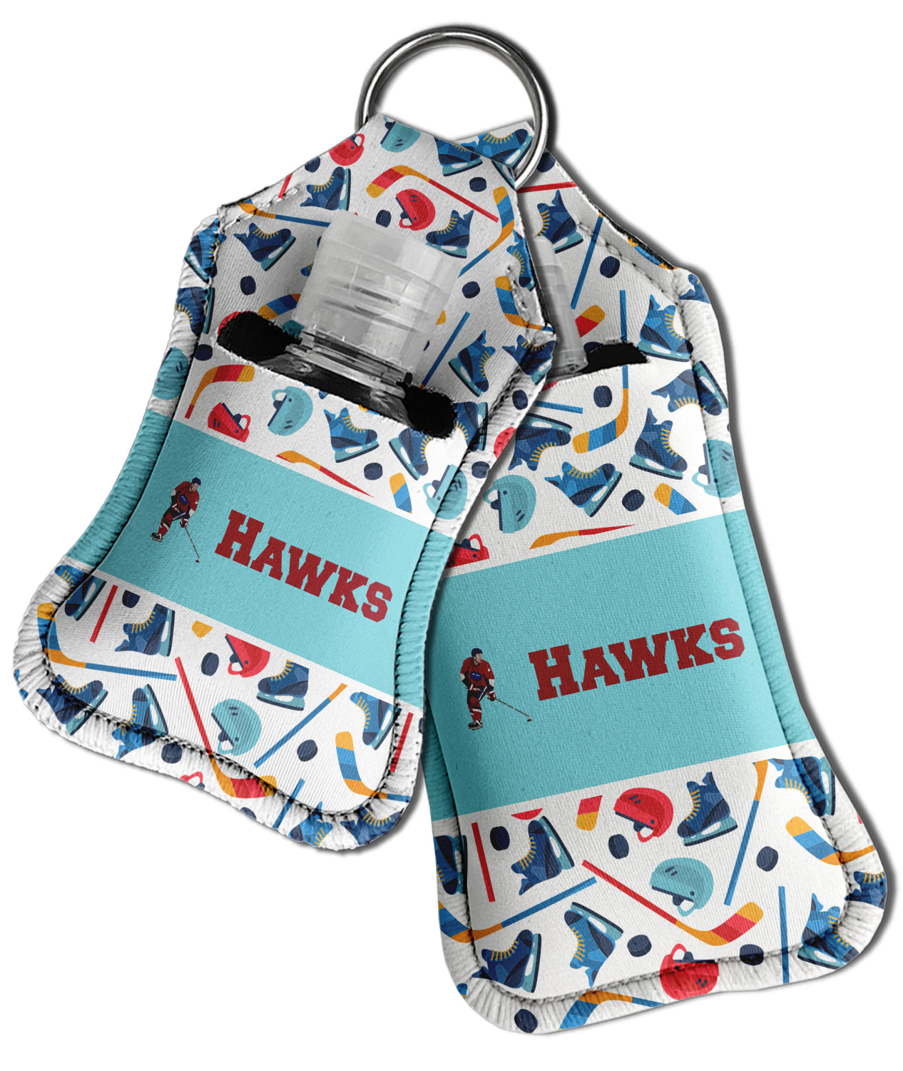 Each hand sanitizer holder comes with its own empty travel-sized, refillable hand sanitizer sure to fit snug in your customized sanitizer case! Our hand sanitizer cases are a durable, yet soft neoprene material sure to last any daily activities or travel agenda. Customize and personalize a hand sanitizer bottle holder with one of our two sizes - small (4.25" x 2.25") or large (5.5" x 2.5"). Each travel sanitizer holder comes with a keyring for attachment on bags, keys, or more!
