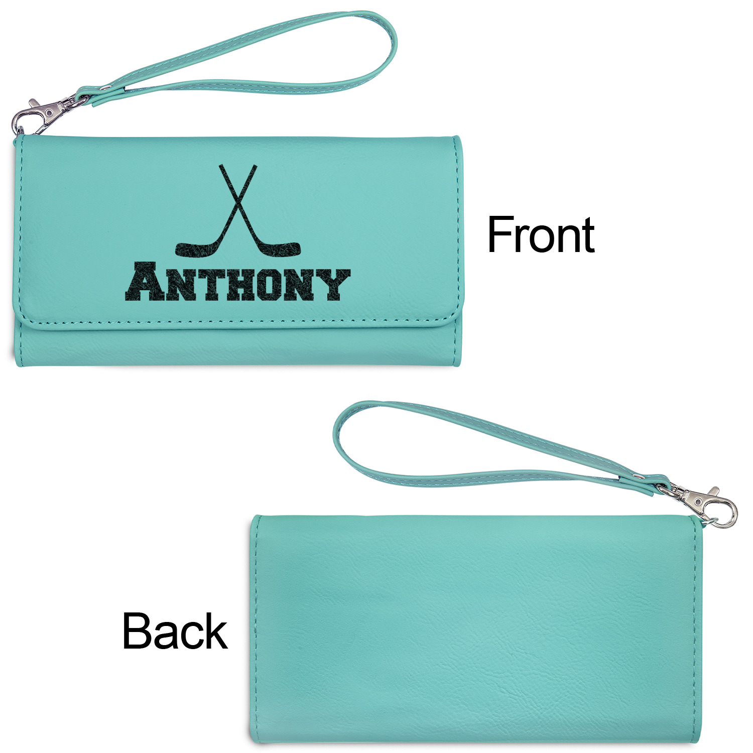 These personalized ladies leather wallets are available in 2 colors - rawhide / cognac and teal.