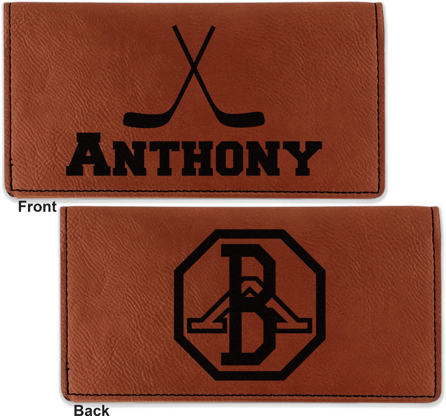 Go into our design center to start personalizing. Your checkbook cover will be laser engraved, making the graphic or text a black color. Choose a fun saying, monogram, or font to go on your checkbook cover. You have the opportunity to do it double or single sided.
