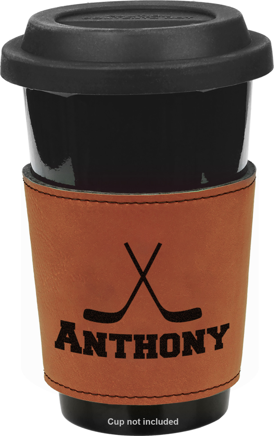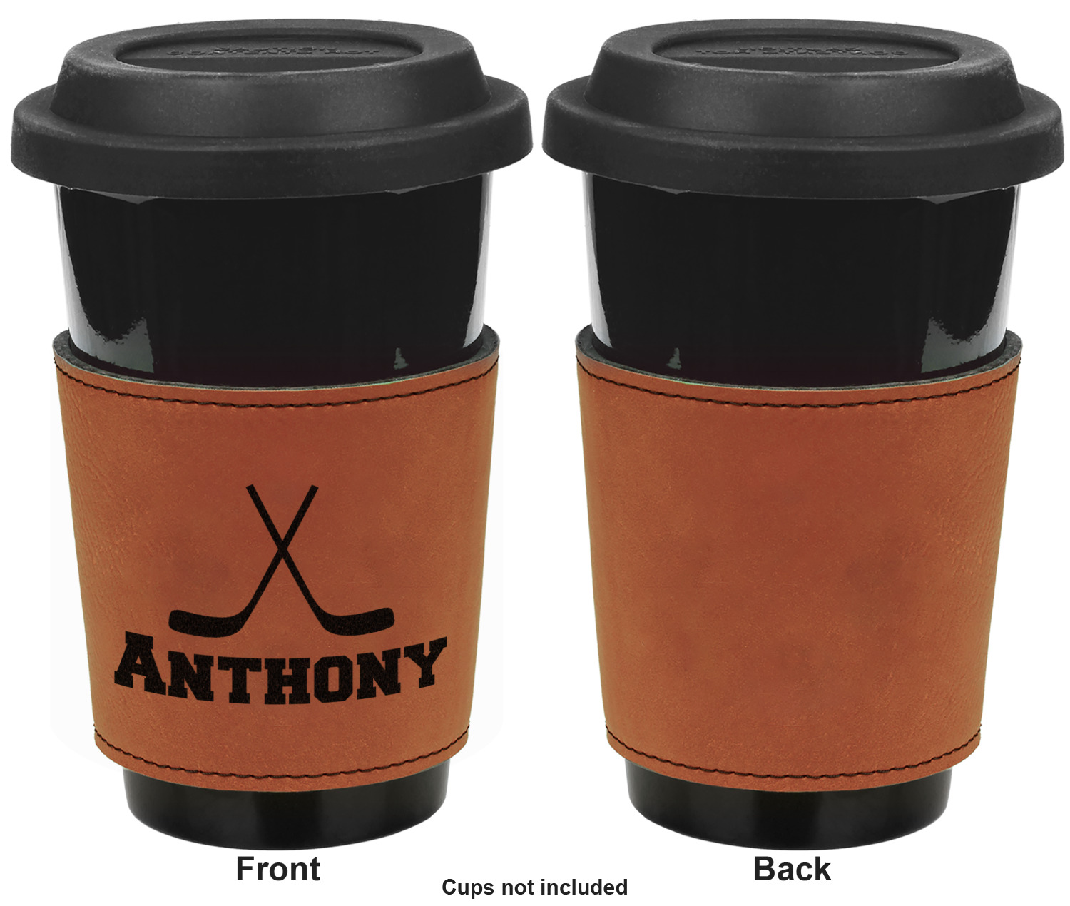 This cup sleeve is made from a suave, cognac-brown leatherette and finished with an intricate, black stitch. The interior of this can sleeve is fabricated from a thin foam material to help insulate your mug's contents. The sleeve is specifically made to suit tapered glasses or mugs, so the top's diameter is 3.5 inches, while the bottom's diameter is 2.75 inches. Your customized design will be laser engraved into the leatherette, leaving behind crisp, black imprint. With these products, we provide you with the option of engraving the front and back, or the front only.