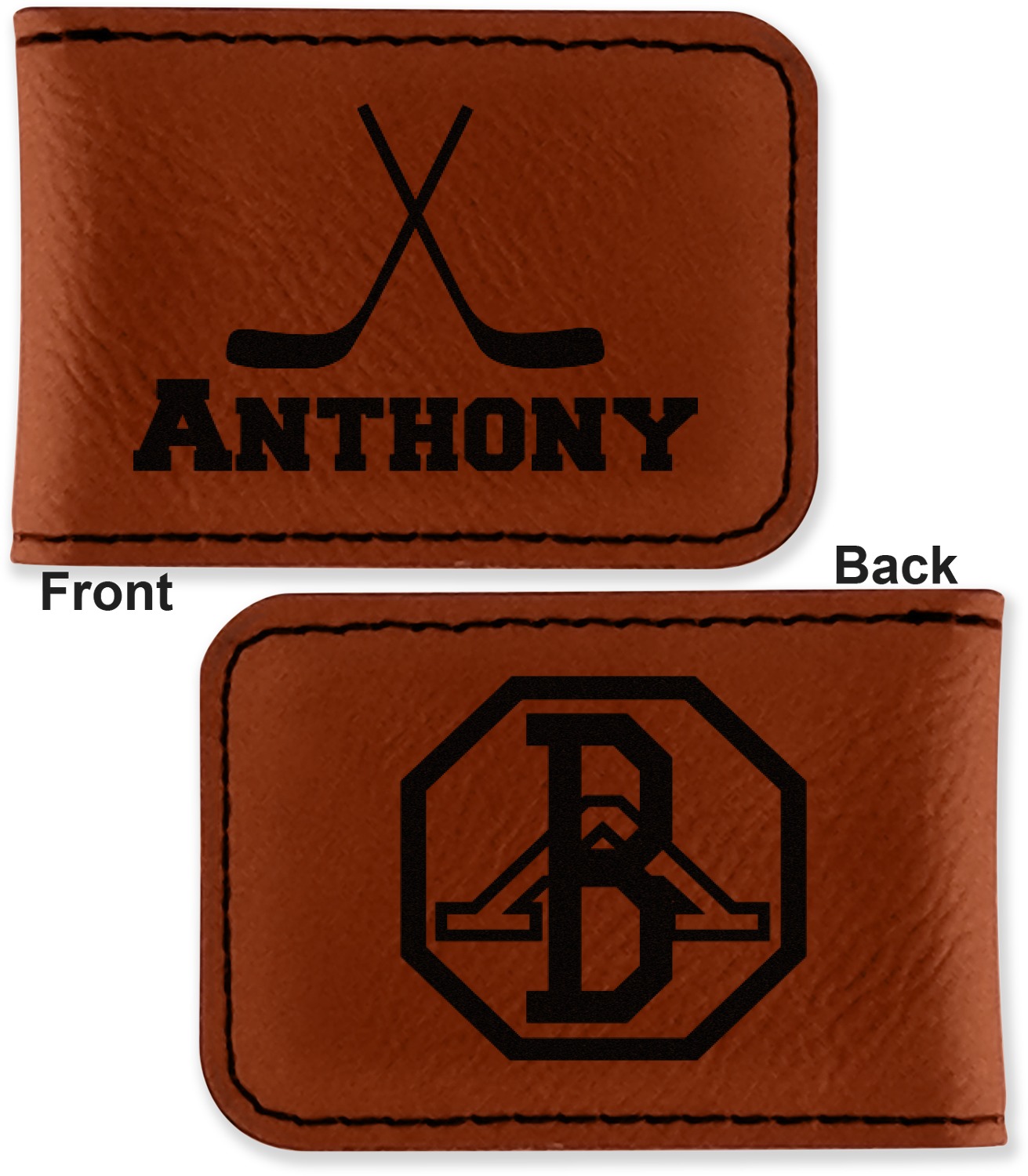 Your money clip will be laser engraved so that the design you choose will come out black. Find a fun graphic, monogram, or font to use to personalize your money clip either on just the front or the front and the back.