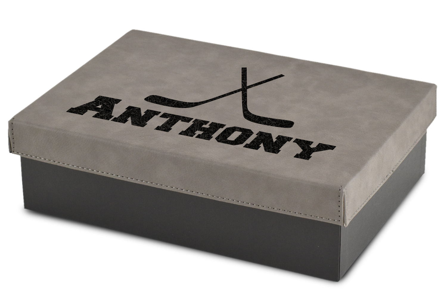 These gift boxes are available in 3 different sizes to accommodate various sized gifts. Available in gray as a neutral color for any occasion as well as to showcase your design boldly. Engraved with a laser this high quality paper board and faux leather gift box is unique and makes any gift stand out.