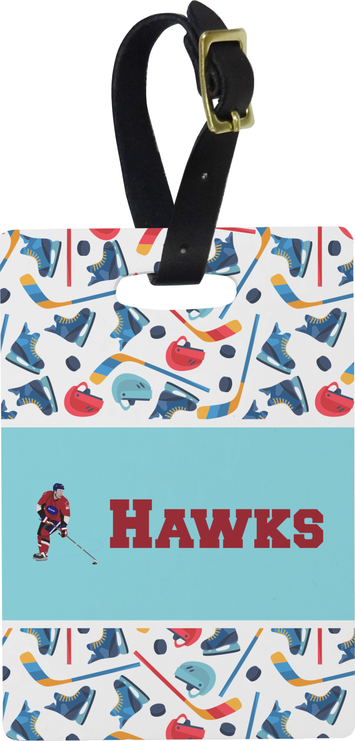 These personalized bag tags are sold in a variety of shapes, so that you may find the product that meets your vision exactly. We sell a round luggage tag, which measures at approximately 4" x 4". Our square luggage tag is about 3.5" x 3.5", while our rectangular version is 2.75" x 4 ".