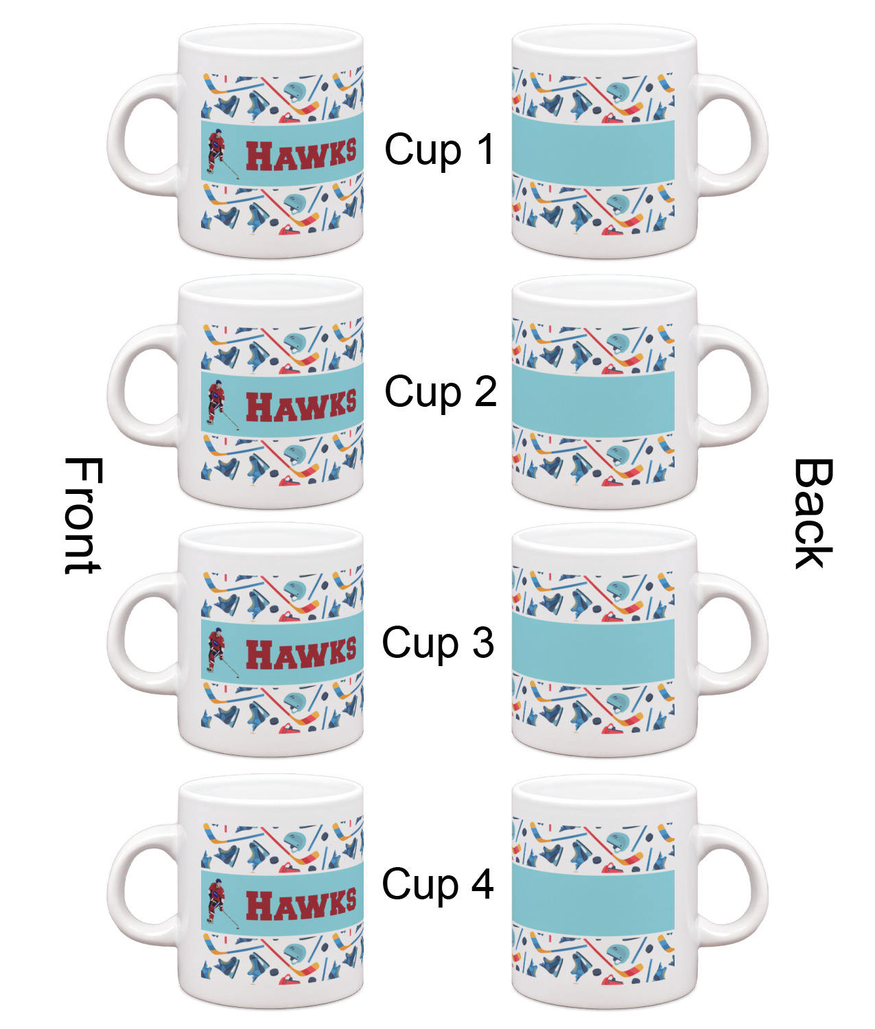 Each of our espresso mugs is a ceramic material sure to keep your drink warm. Personalize one cup for yourself, or order a set of 4! Its the perfect little gift for any coffee lover! We carry two sizes for you to personalize - 3 oz. (approx. 3.25" x 2.325" x 2.625") or 6 oz. (approx. 4" x 2.9" x 2.9"). Our 3 oz. mug is perfect for that single shot espresso while our 6 oz. mug can be your next favorite cappuccino cup holding two shots of espresso!