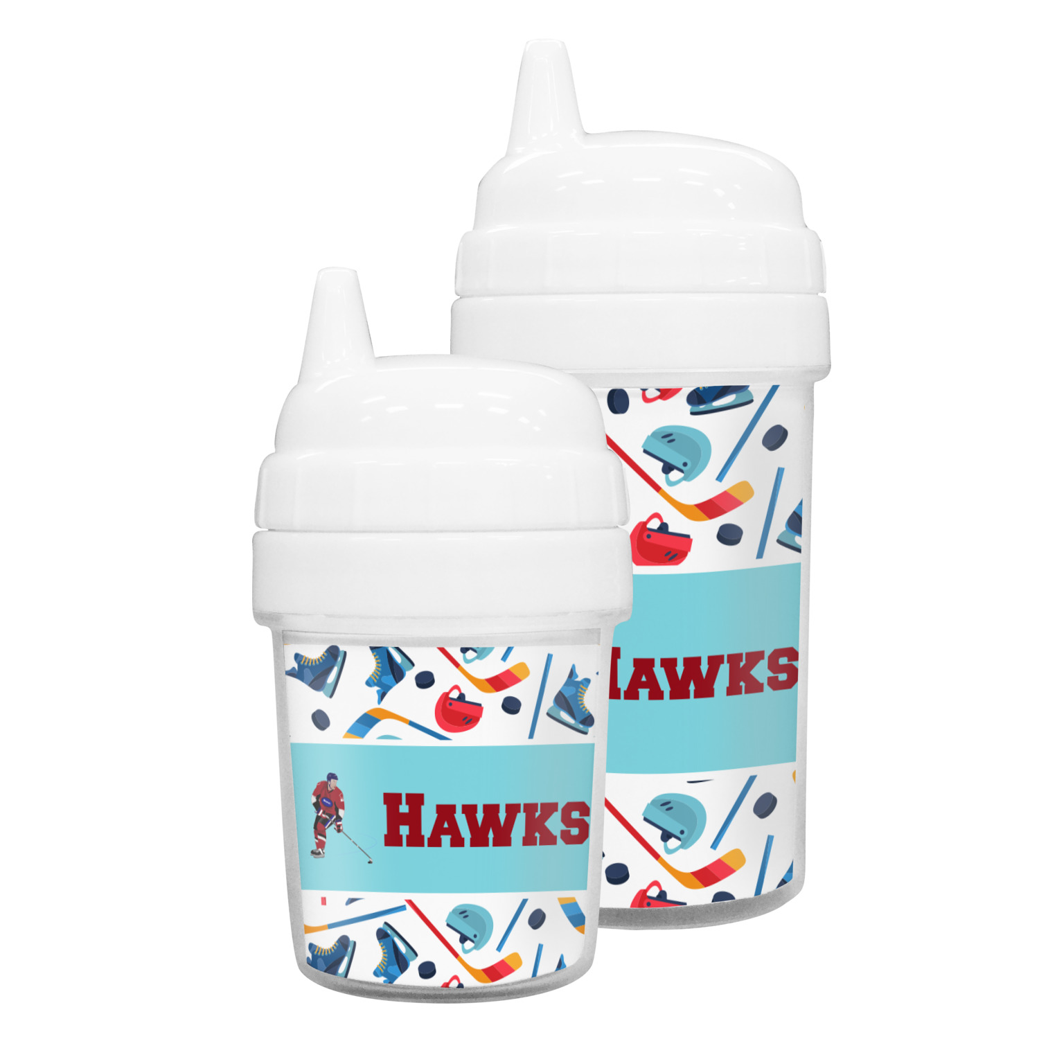 Our toddler cups are free of BPA, and have a twist-open lid so that you can easily fill and clean these cups for your young ones. Each cup also comes with a sippy nozzle to reduce spills. We offer these custom sippy cups in two different sizes; we have a baby sippy cup that holds 5 ounces, and a toddler sippy cup that holds 10 ounces. Your customization is printed on a premium glossy media insert that is placed within these toddler drinking cups.