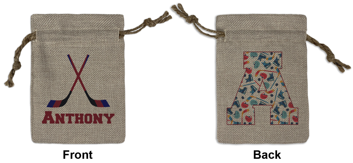 We sell our Burlap Gift Bags in 3 variant sized bags. Made with burlap polyester, each personalized bag can be secured with a twine drawstring pull. Your custom design is available to print on one side or both sides - completely up to you! The sizes of the bags measure approximately 4.5" x 6.5" for the smallest size, 6.5" x 8.0" for the medium size, and 6.5" x 13.5" for the large-sized bag.
