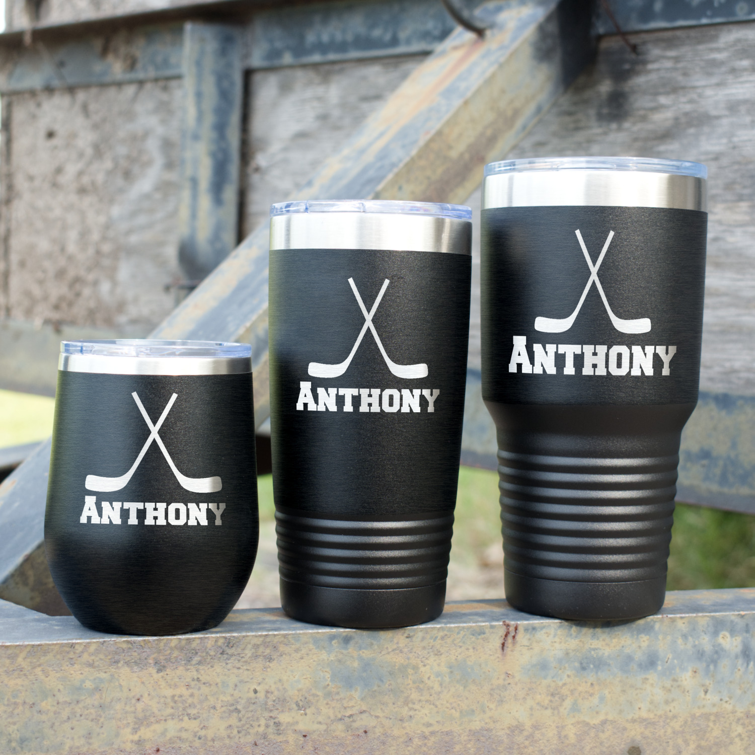 Design your wine tumbler with a cool graphic or quote. Even put your initials or monogram! These cups are laser engraved, which looks extra sharp on the metal tumbler.