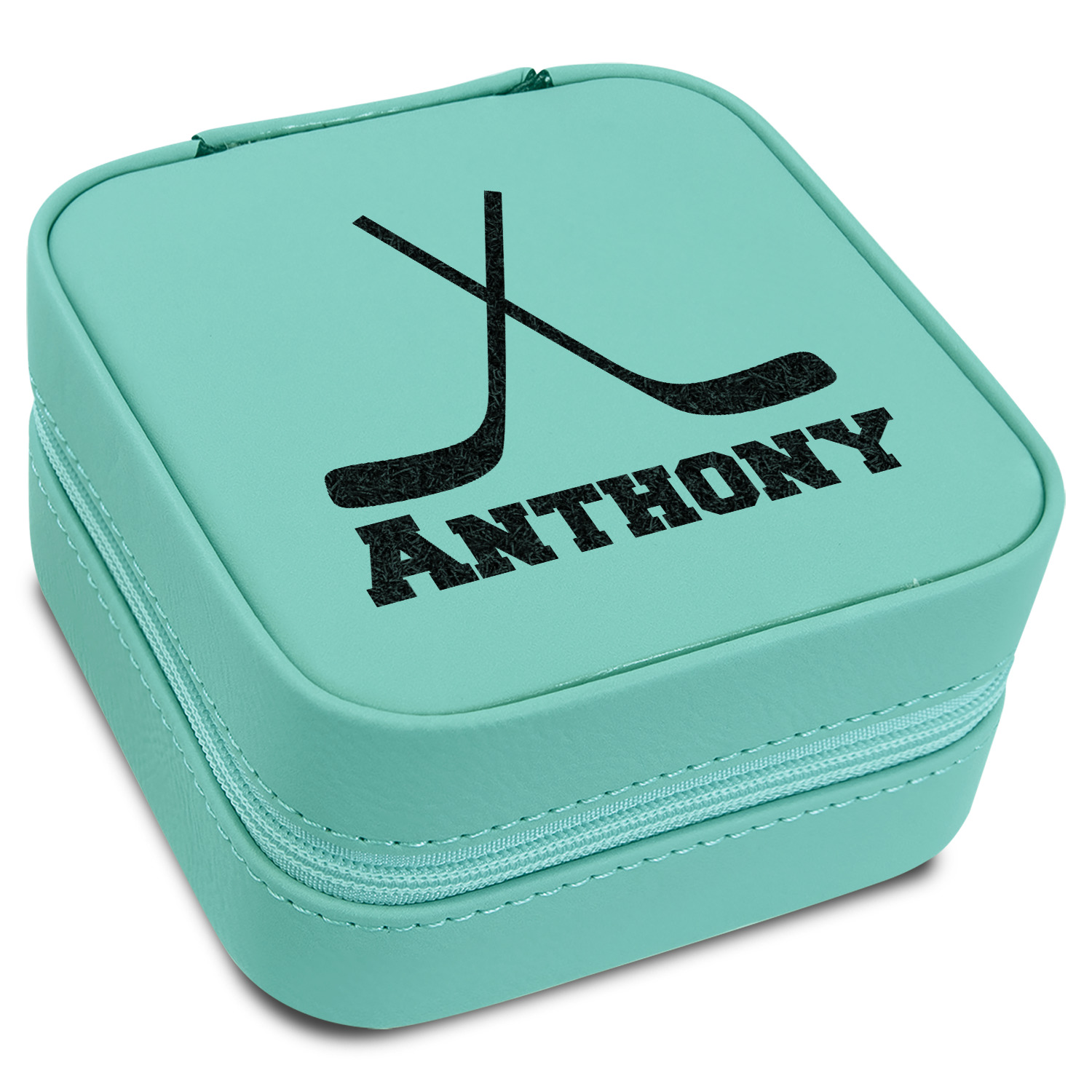 This square zippered travel jewelry box is made from leatherette and is available in four colors - classic cognac / rawhide, a beautiful teal. navy blue or pink. The tan colored soft velvet inside has compartments and hooks for all your jewelry - rings, chains, earrings, bangles etc.