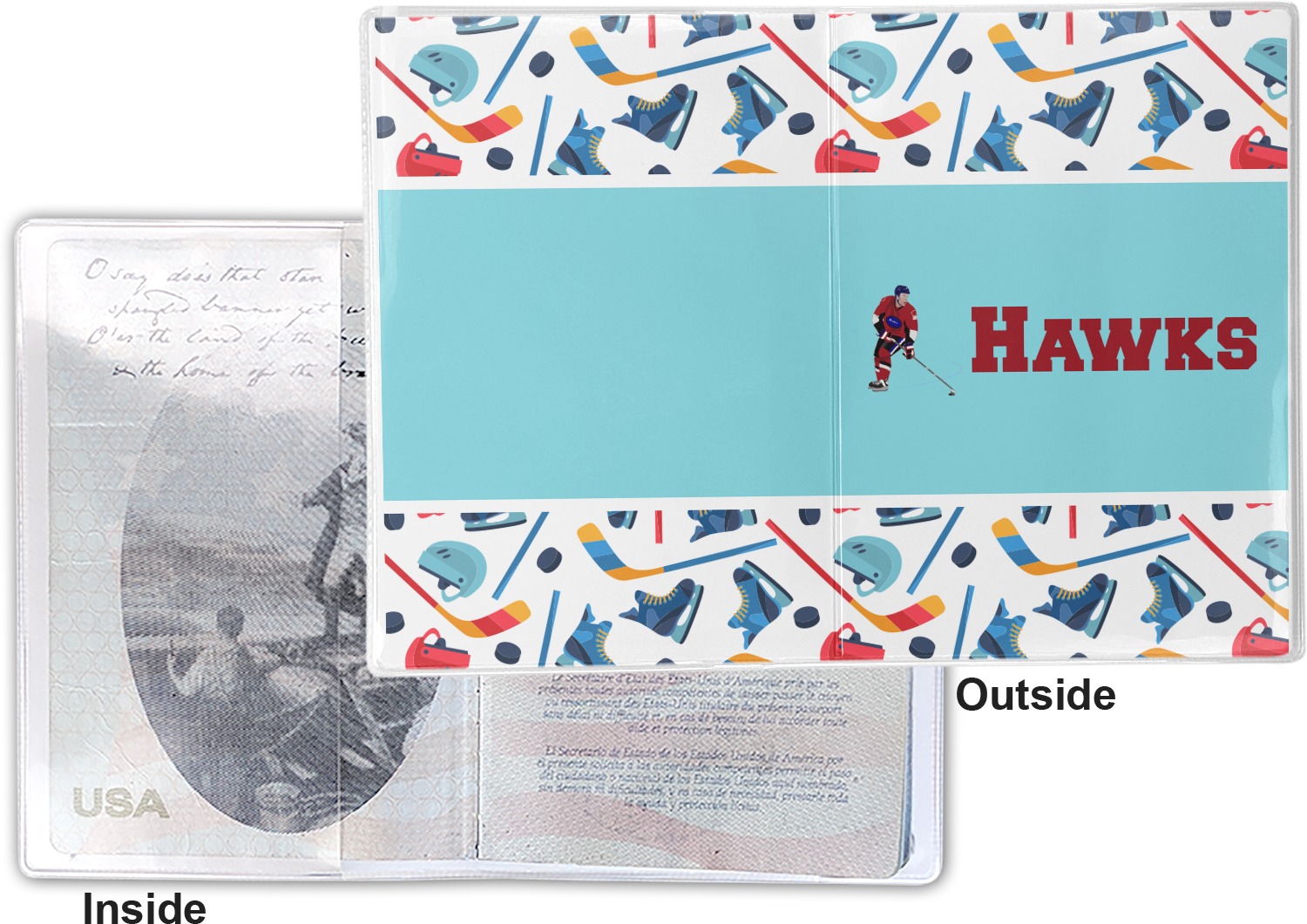 This cover is made of a sturdy clear vinyl with a personalized vinyl insert inside. There is a large and a small pocket on either side to hold the covers of your passport easily and firmly. The passport holder is approximately 7.5" x 5.25", the perfect size to snugly fit your passport. This slim cover is the perfect way to protect your passport without being one more bulky item you have to carry.