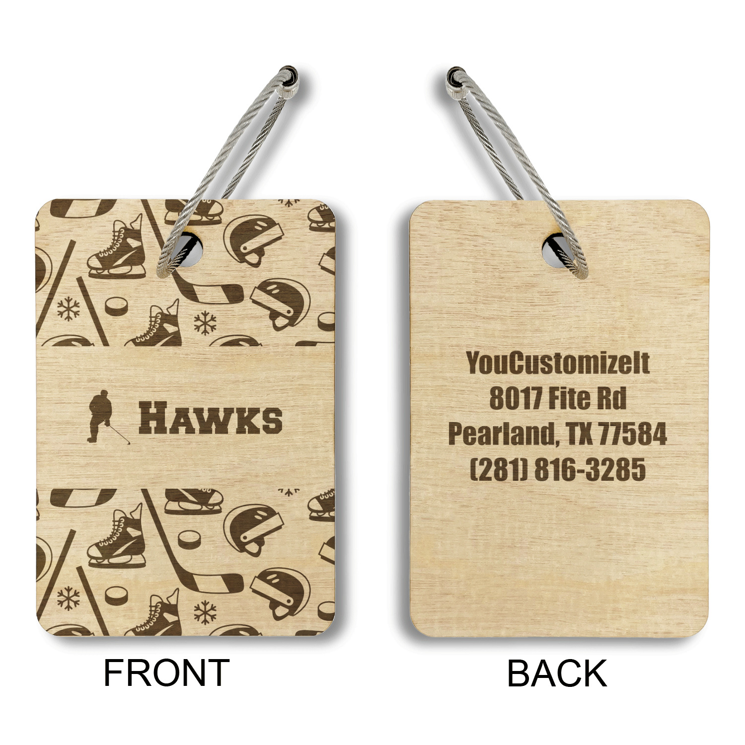 Made from a premium hardwood, these luggage tags are laser engraved and cut just for you. The front contains your design of choice and the back has your contact information to ensure your luggage gets back to you if ever lost.