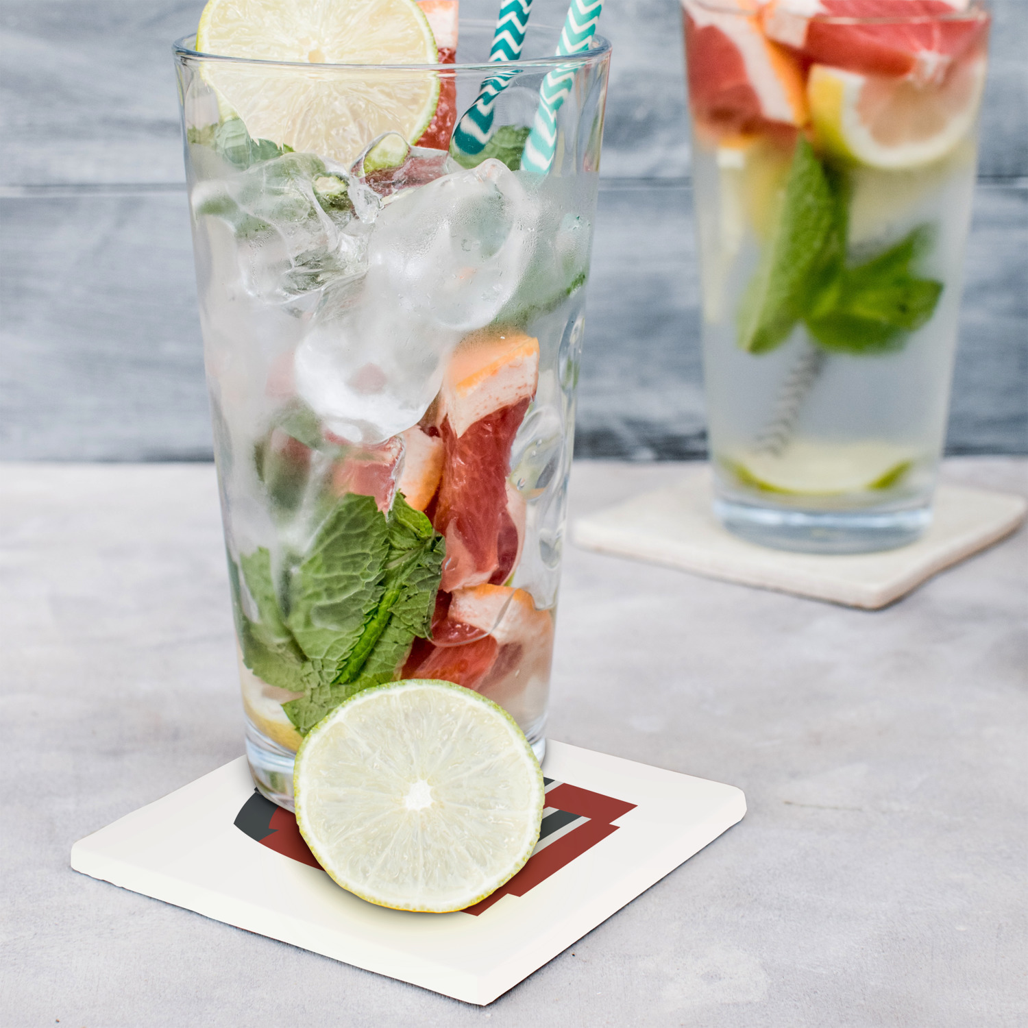These customized stone coasters are perfect for use with beverages that are served in drinkware that "sweat". When cocktails, sodas, iced tea, water, etc. are served with ice in a regular glasses (non insulated glasses), they release condensation that drips down the outside of the glasses.