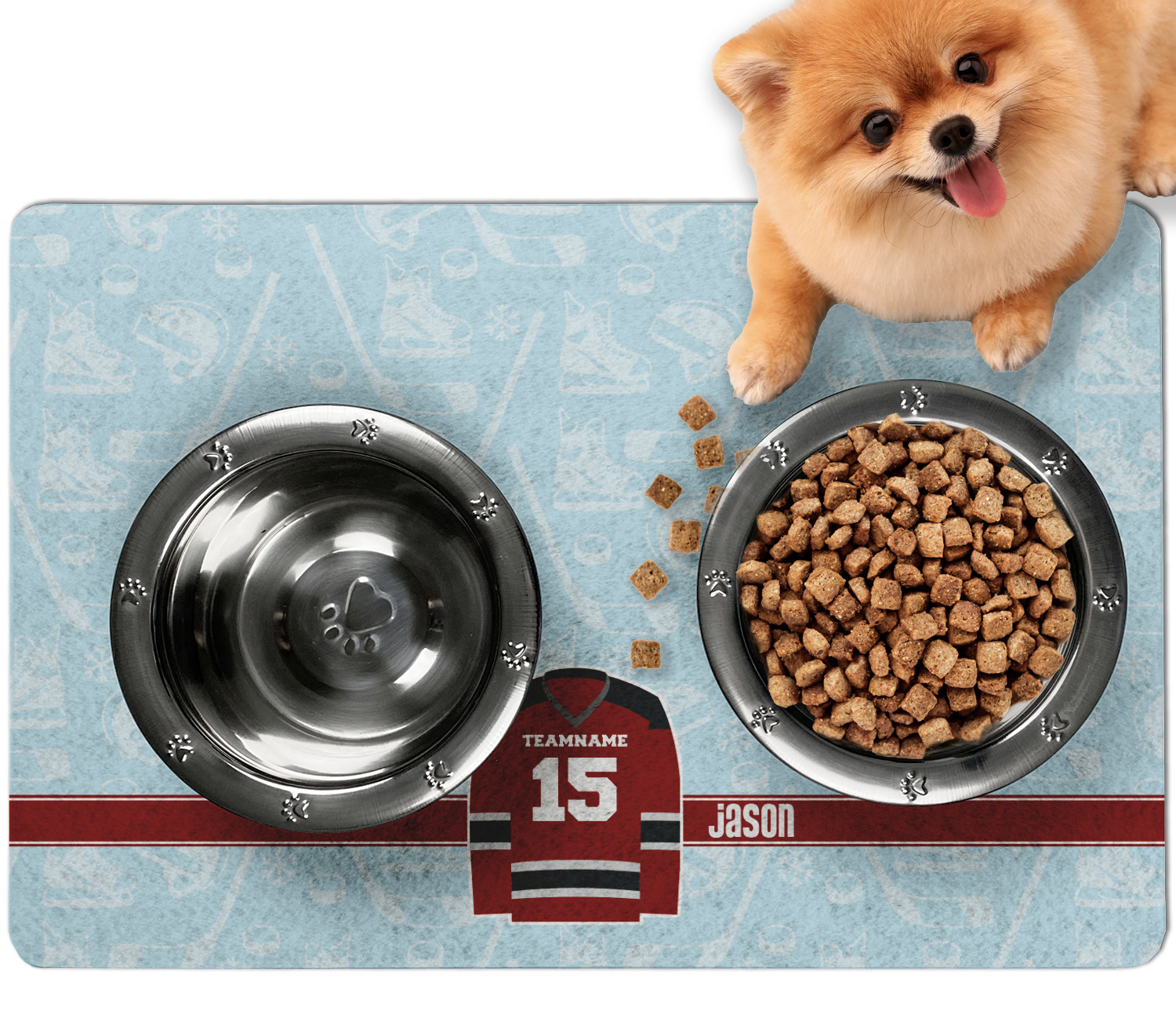This dog bowl mat, fabricated from polyester, proudly displays your customized design on its top, while its bottom includes a non-slip rubber. This feature allows it to remain firmly in place, even when your dog spills his/her water. With 3 sizes available (18" x 12", 24" x 18", 30" x 24"), the pet food mat has ample space for both a food and water bowl for any sized dogs. Though specified for dogs' use, these mats are also a splendid option for cats.