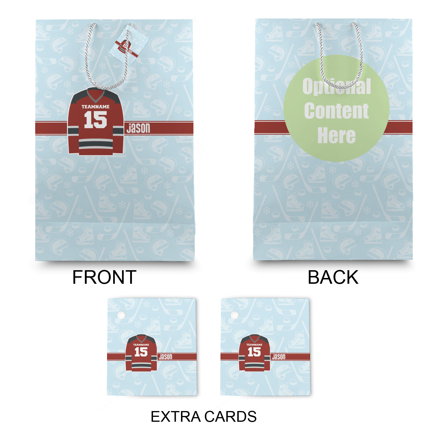 The bottom of the bag has a cardstock base to make the base more sturdy to hold up to all of your gifts. Each bag comes with one card on the rope handle and at least 1 extra card.