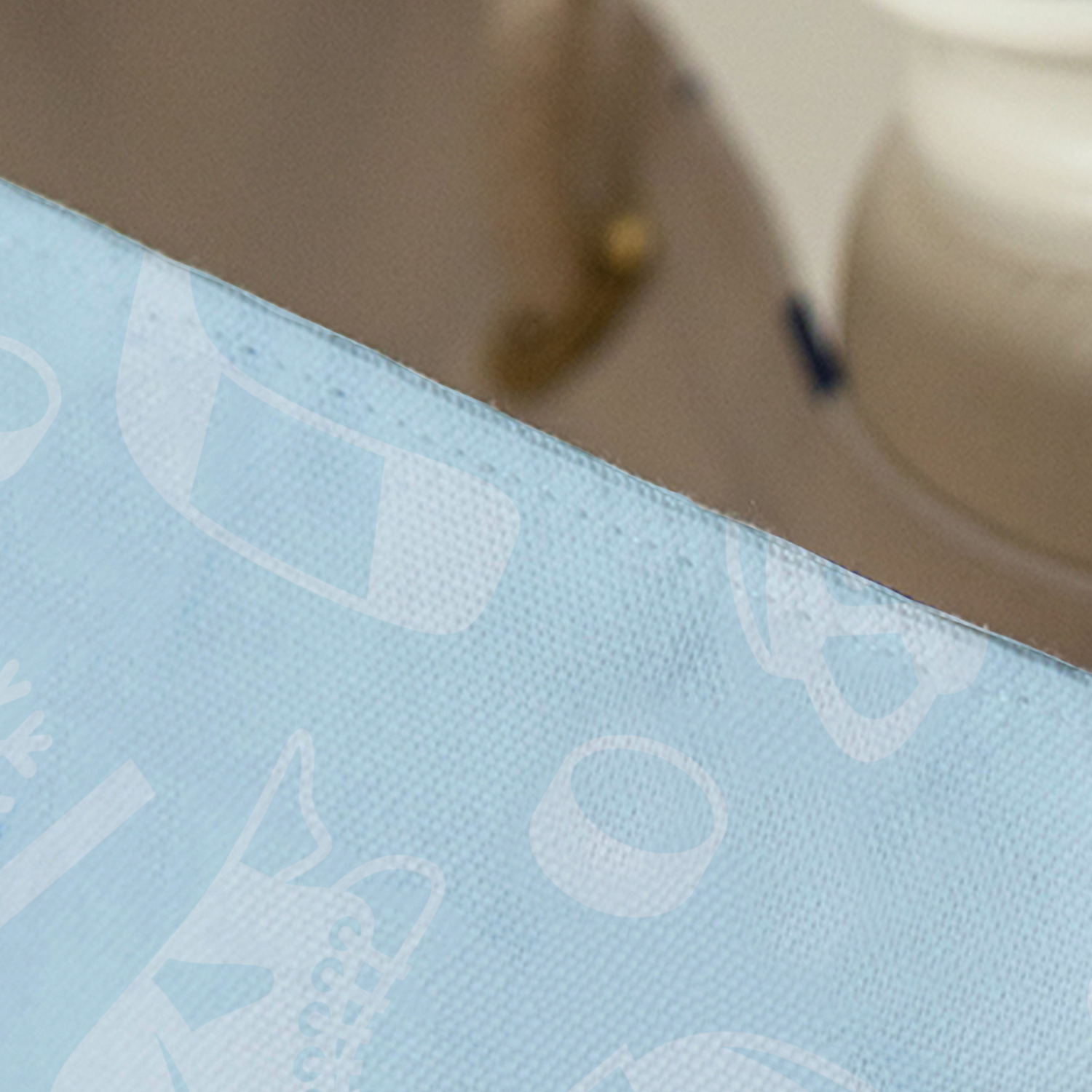These large totes are handmade i.e. printed, cut and sewn right here in the USA. The canvas like material is printed using dye sublimation; the fabric is then cut and sewn along with a beautiful cream colored lining (to match the rope handles). The brass grommets are then added and the cream colored rope if fed through the grommets and knotted.