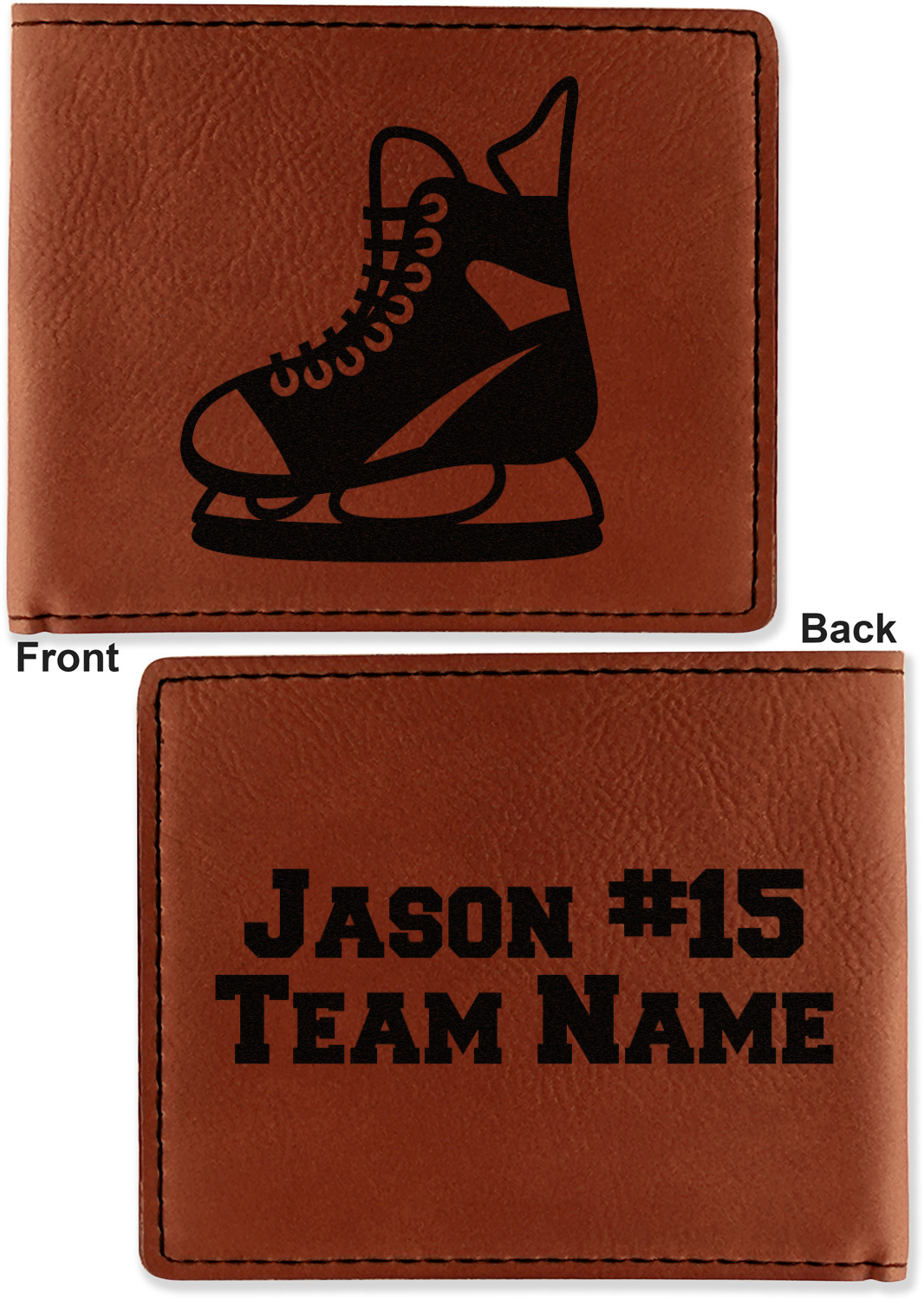 Your bifold wallet will be personalized by laser engraving, which will be a black color on the wallet. Choose a graphic, text, or monogram to personalize your wallet. There are thousands of choices in our design center.