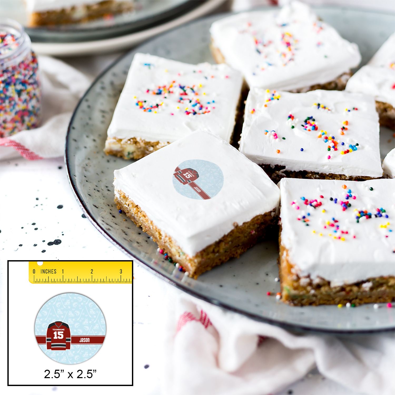 Your customized cookie toppers can be placed on top of any dessert with an icing top.The icing helps adhere the cookie topper to the dessert.