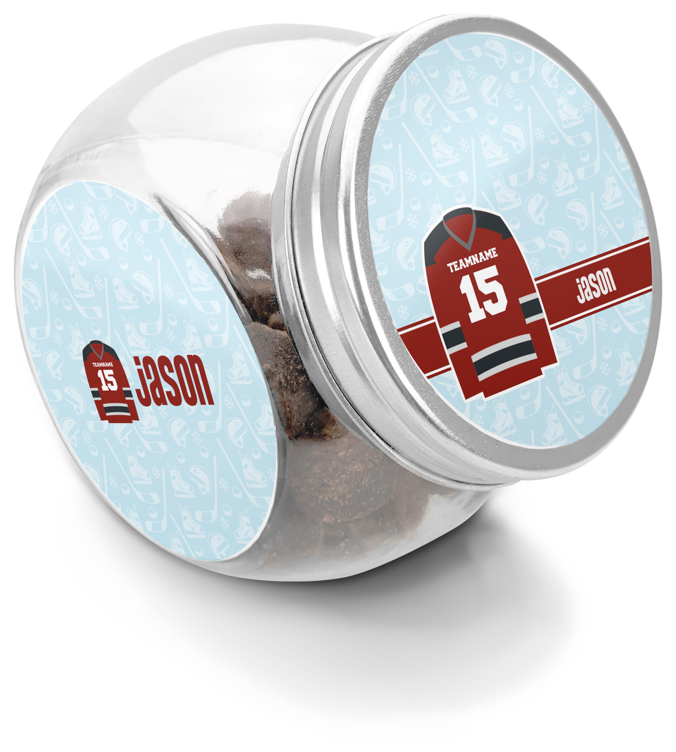 Pleased with your customized design? Perhaps purchase a matching dog food bowl, dog food mat, or even another, larger dog treat jar! Check out our Pet Accessories Department for even more gift options for your puppy.