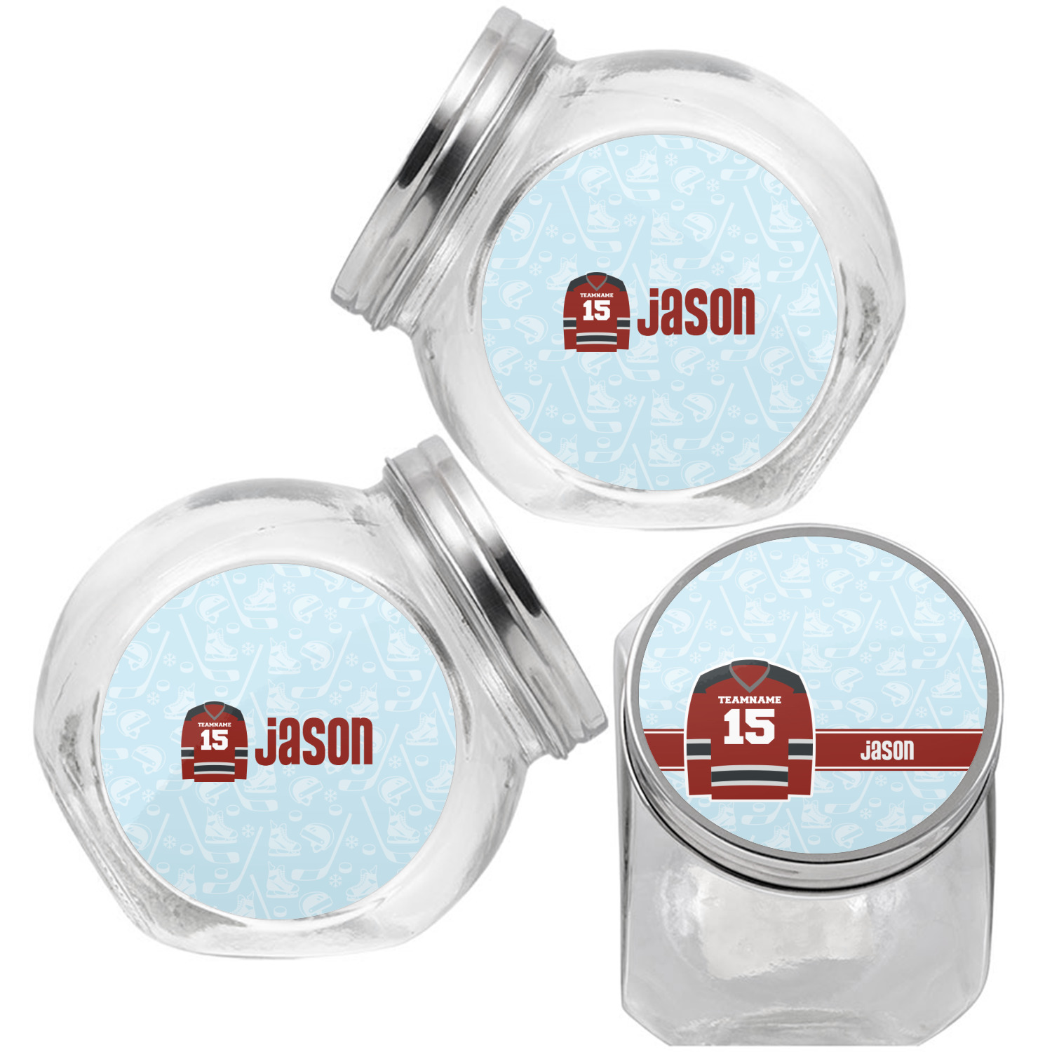This treat jar is an excellent way to store treats for your favorite canine or feline. Moreover, their delicate, classy appearance makes them a tasteful addition to your countertop's décor. Crafted from clear glass, its unique construction and silver metal, screw-on lid allows for quick and easy access. Three, permanent, vinyl stickers are applied to both sides of the jar and lid, presenting your personalized design. The base of this glass, dog treat jar is 3.4" x 4.75", and the jar stands at 5" tall. Though on the smaller side, this jar is best suited for smaller treats or training treats.