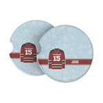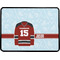 This design features a white background, reminiscent of ice, with hockey pucks repeating on it. The main design has a red hockey jersey in the foreground that can be customized with your favorite team's colors. This design perfect for any die-hard hockey fans!