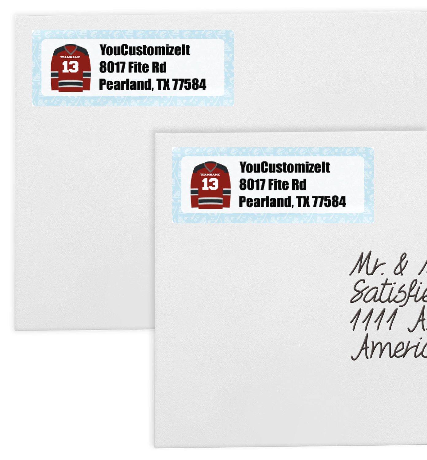 Personalize your design by putting your team's name or your last name right on the hockey jersey. Change the background color, add a ribbon, or even change the font! Have fun with it! If you ever run into any trouble in our design center, be sure to ask us for assistance. We are always happy to help.