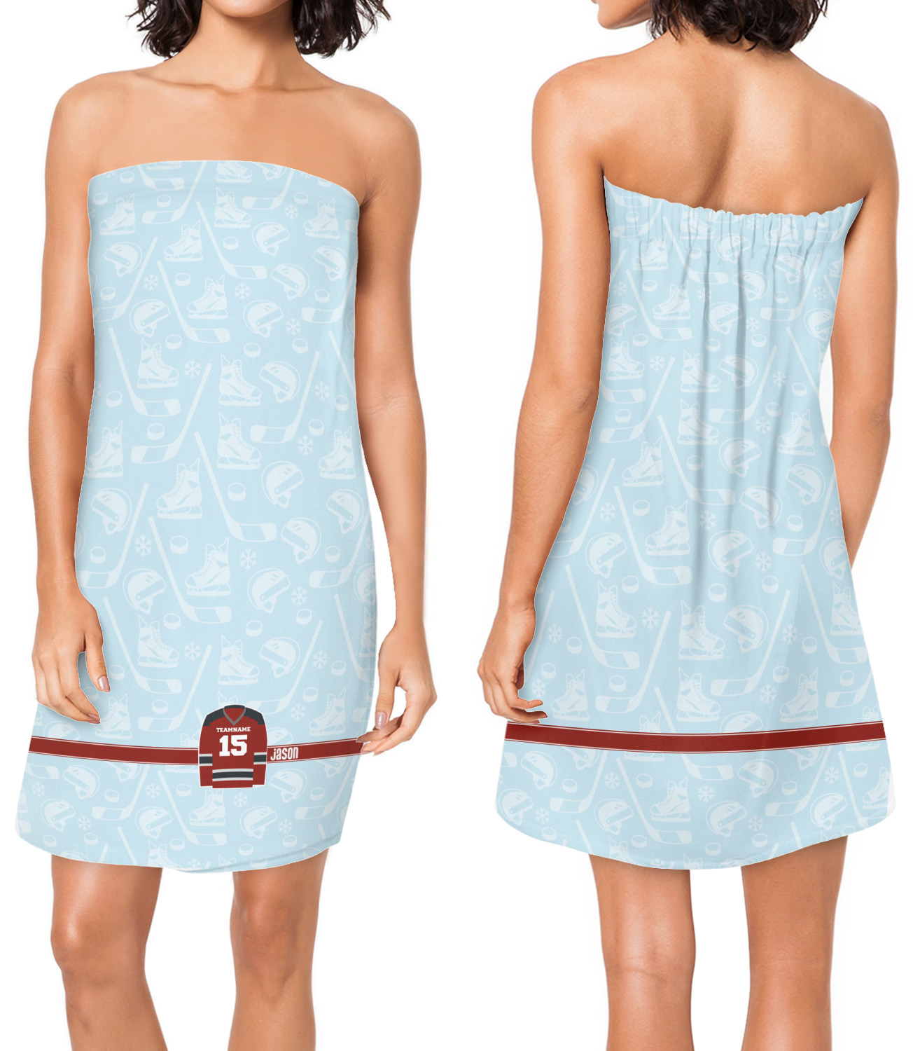 Made from a plush, fleece fabric, these luxurious towel wraps are comfortable and absorbent. They are printed, cut, and sewn for you, right here in the USA, after you place your order. These personalized bath wraps measure at approximately 59 by 32 inches, and display your customization across the outside.