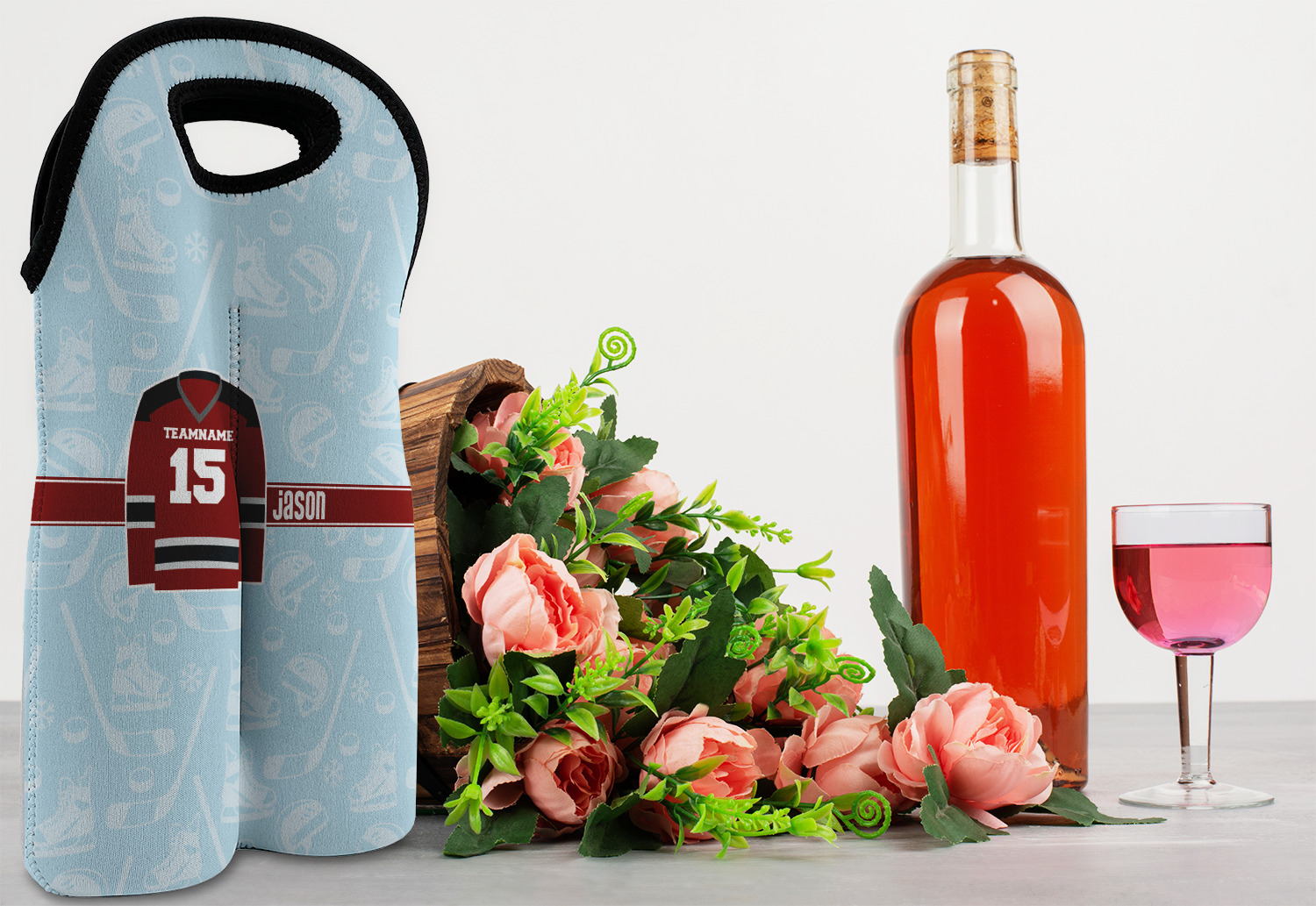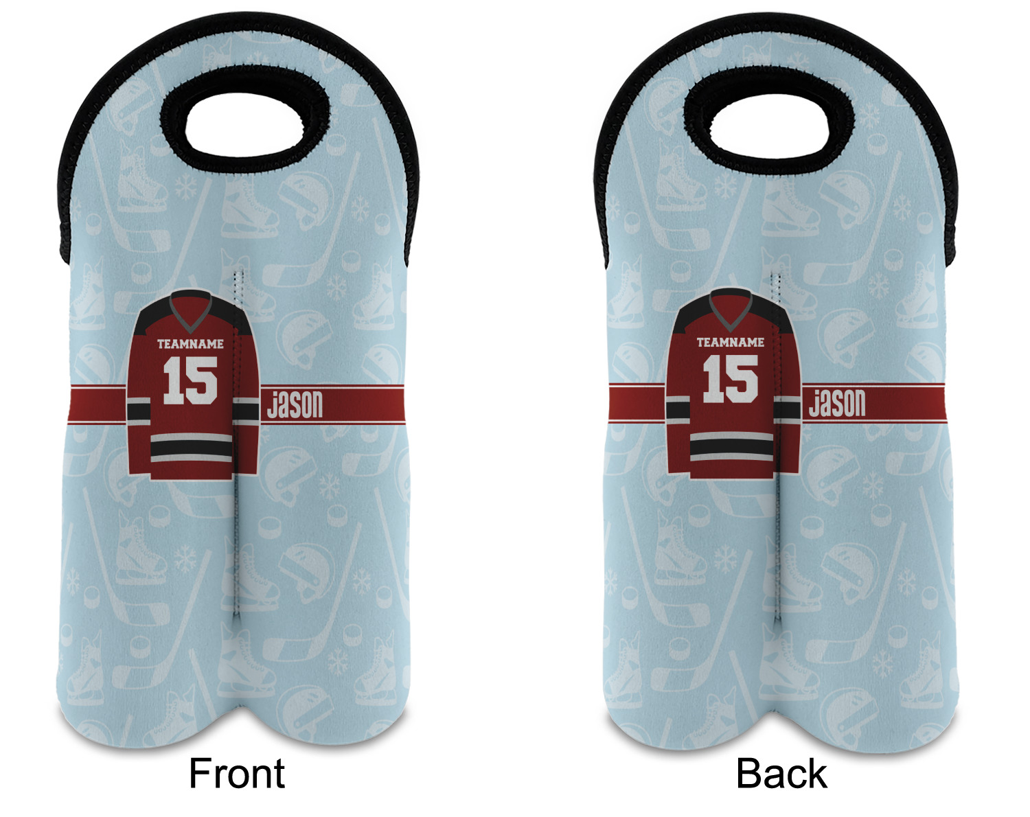 These tote bags are insulated to keep the bottles cold and have a stitched separation down the middle and double handles to keep the two bottles safe and secure during travels.