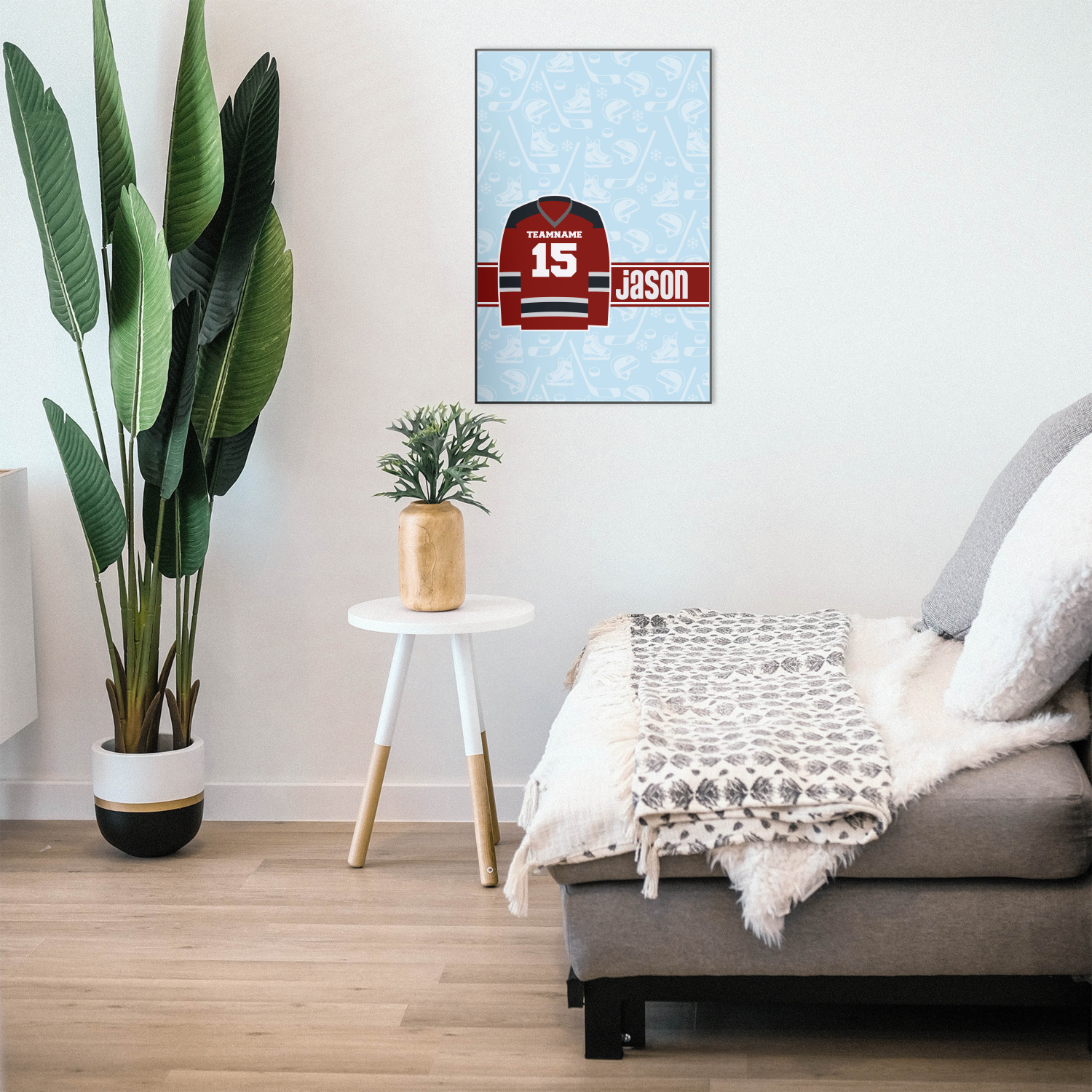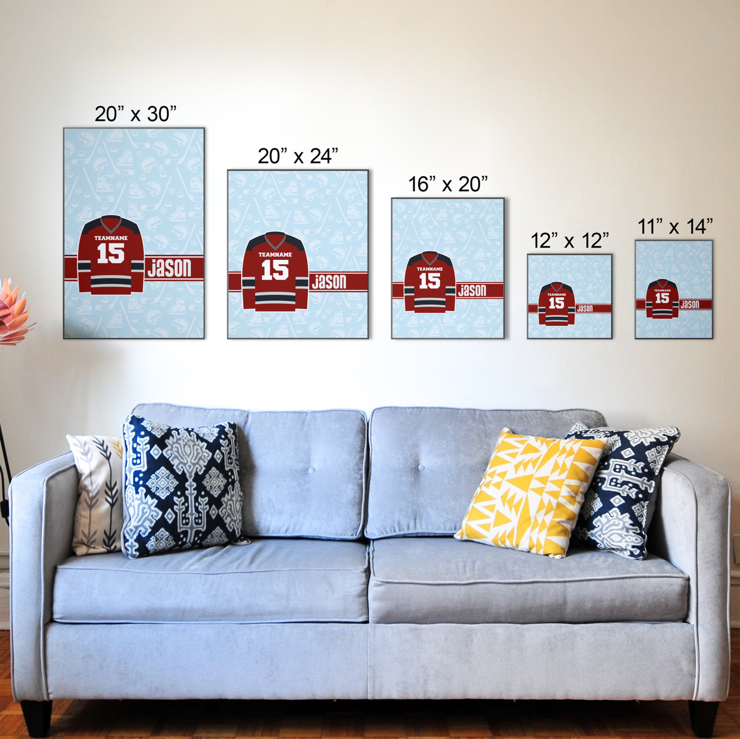 Personalize your design by putting your team's name or your last name right on the hockey jersey. Change the background color, add a ribbon, or even change the font! Have fun with it! If you ever run into any trouble in our design center, be sure to ask us for assistance. We are always happy to help.