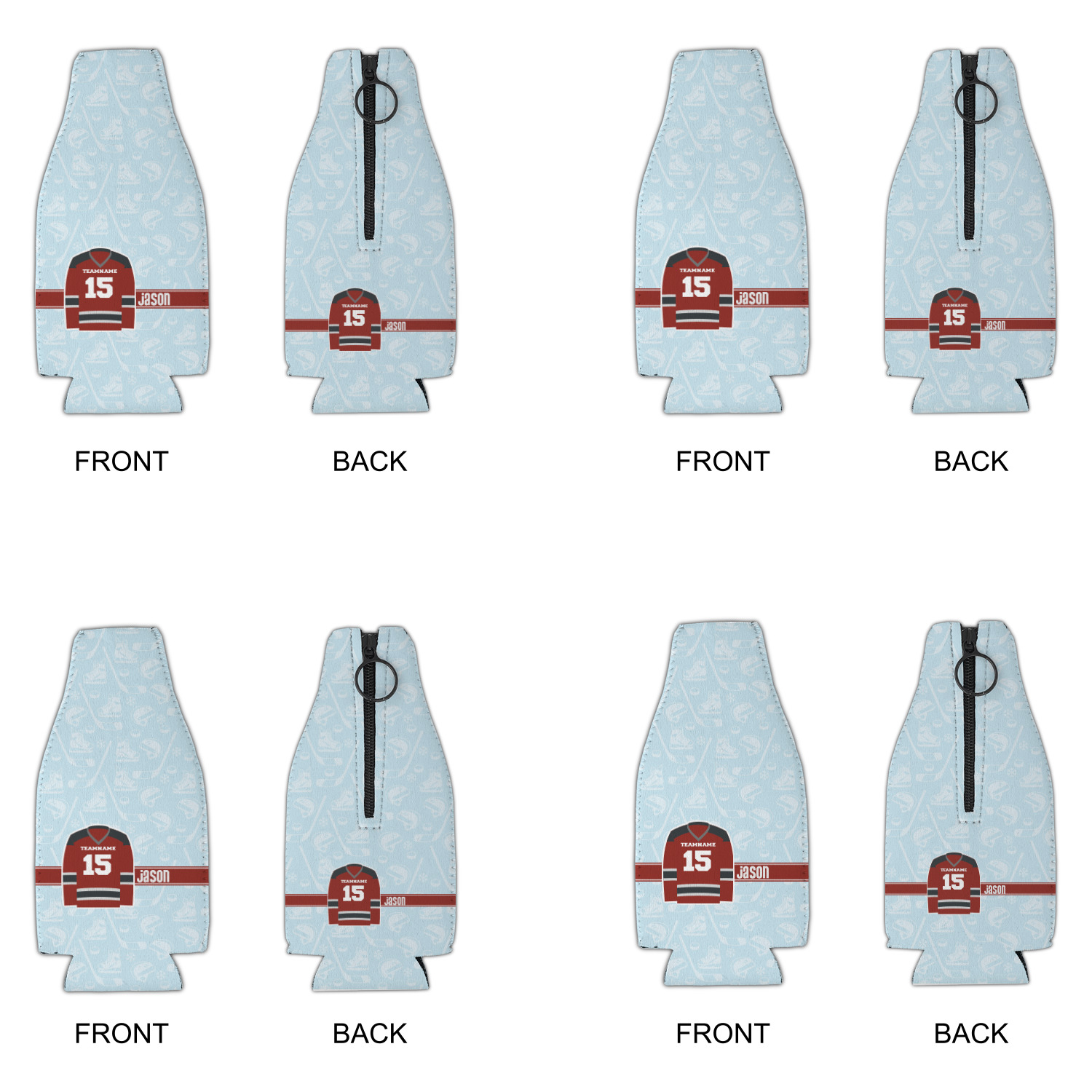 Fabricated from a thick, insulating neoprene, these custom can sleeve keep your drink cold, while proudly displaying your customization on all sides. These can sleeves are designed to fit most 12oz bottles. Available in two types - zipper cooler for insulating the full bottle or the jersey style for sports season. Also available as a single can sleeve or in a set of 4 for you to share with friends and family. For convenient storage, they can also be folded.
