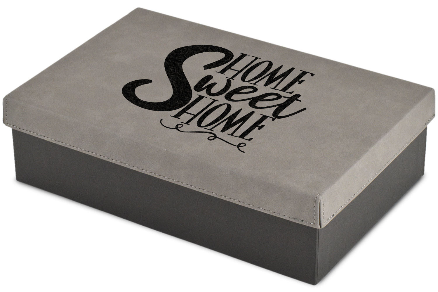 These gift boxes are available in 3 different sizes to accommodate various sized gifts. Available in gray as a neutral color for any occasion as well as to showcase your design boldly. Engraved with a laser this high quality paper board and faux leather gift box is unique and makes any gift stand out.
