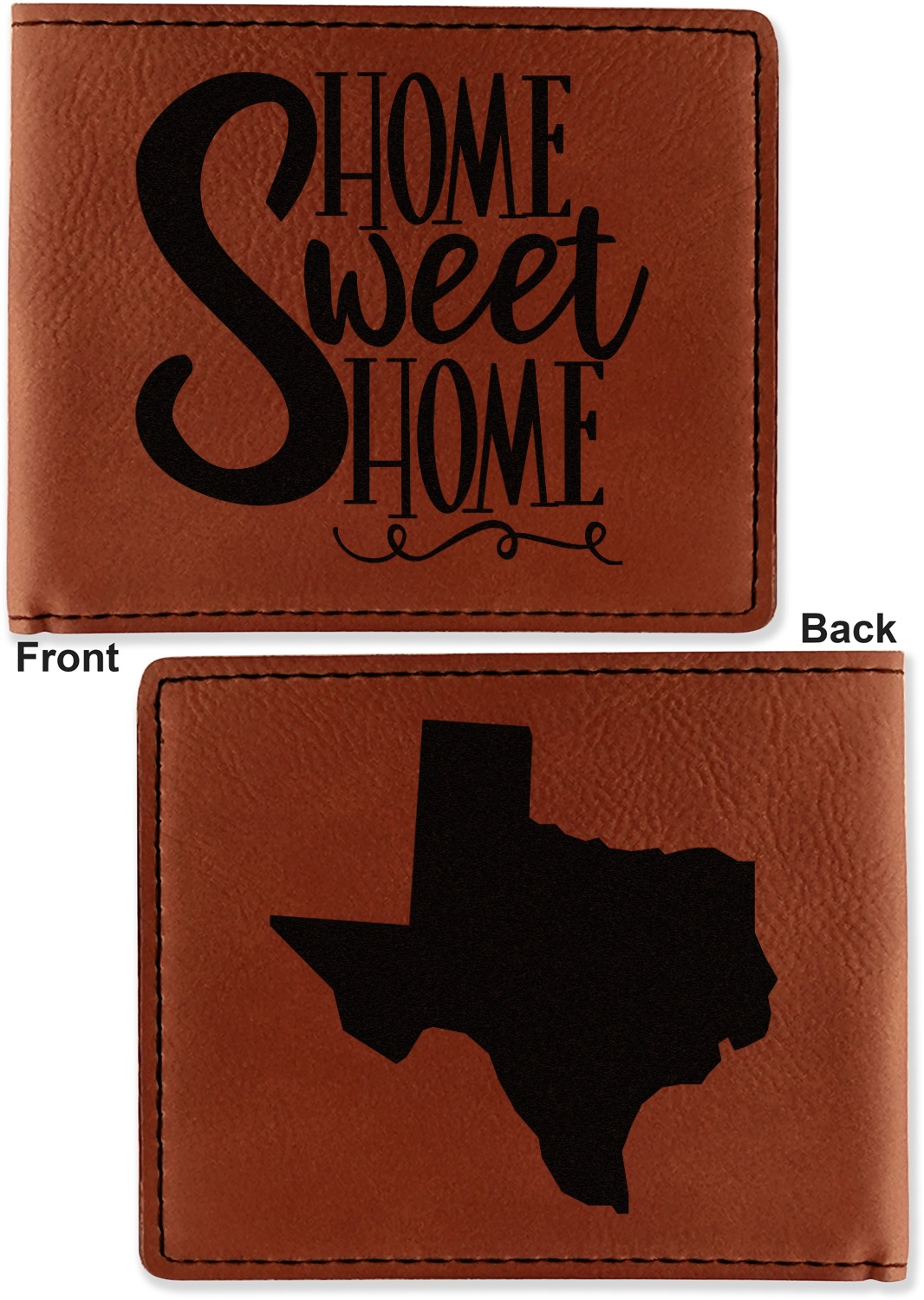 Your bifold wallet will be personalized by laser engraving, which will be a black color on the wallet. Choose a graphic, text, or monogram to personalize your wallet. There are thousands of choices in our design center.