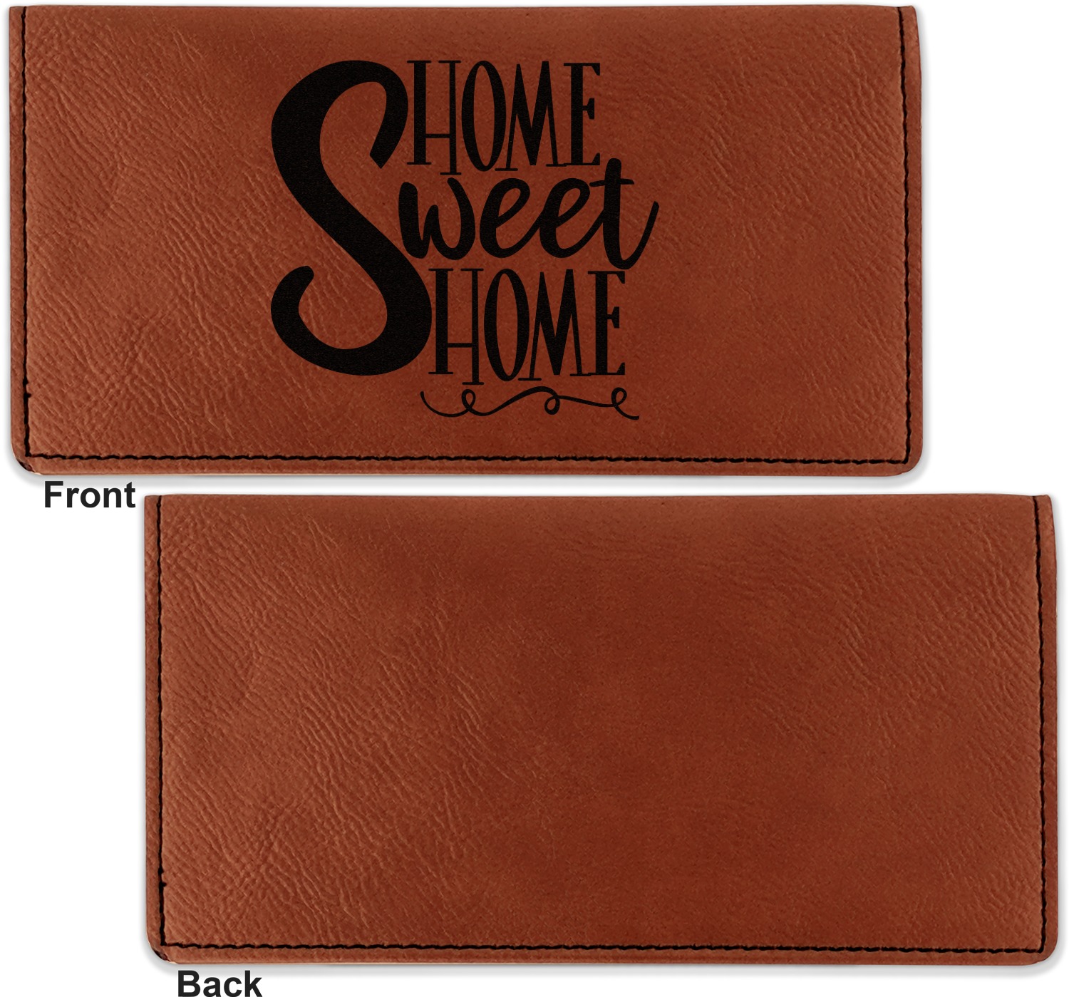 Go into our design center to start personalizing. Your checkbook cover will be laser engraved, making the graphic or text a black color. Choose a fun saying, monogram, or font to go on your checkbook cover. You have the opportunity to do it double or single sided.