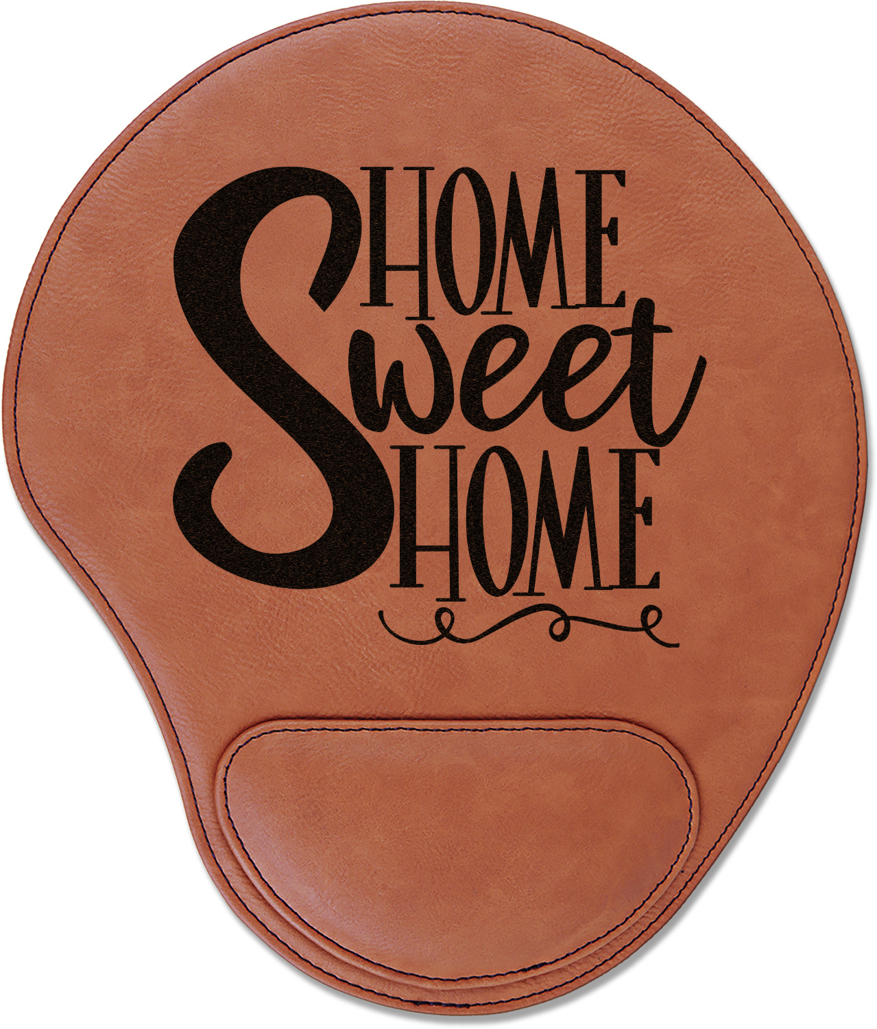 In a rounded shape, this mouse pad is made of a luxurious, cognac-colored leatherette. The nature of this material allows your mouse to glide smoothly across its surface. Strong stitching lines the edges to guarantee stability and strength. As added support for tired wrists, your personalized mouse pad features a supportive wrist rest at its bottom. This model measures at 10.25" x 9", while its wrist pad is approximately 5" x 2.75", with a thickness of 0.75". Your personalized design is laser engraved into the front face of this mouse pad.
