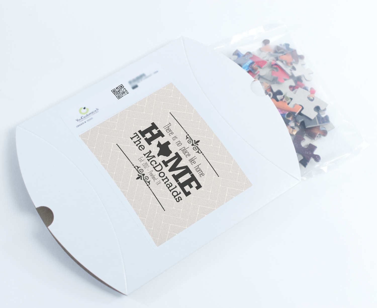 Depending on the look you are trying to achieve, you can add; a thematic pattern or background, with a photo in a frame and text or personalization to your puzzle. Basically if you can imagine it, you can design it!