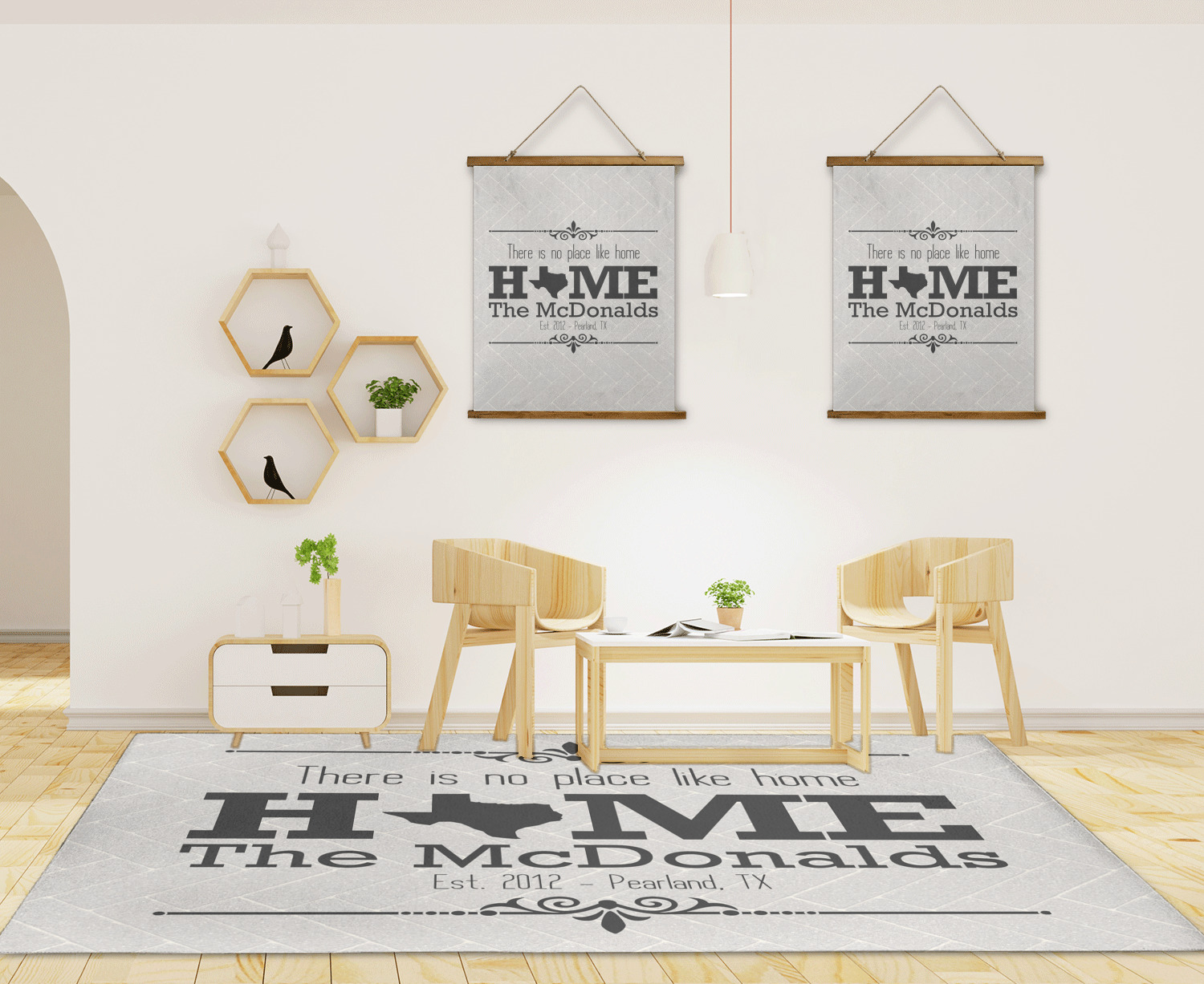Area rugs add color and warmth to any room in the house, so create a custom area rug to suit your personal style and match it to the colors in your home. Have it personalized with a monogram, initial, name or a combination of these - the choice is yours.