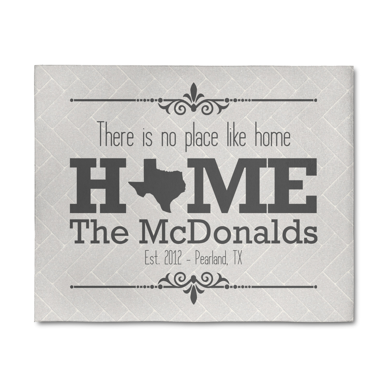 This design features a beatuiful graphic that spells out "Home" with your home state substituted for the "o". You are able to change the state to one of the 50 United States in our system. There is personalizable text above and below this with some ornate brackets on the top and bottom as well. The background is a subtle herringbone brick pattern that gives a nice homey touch. The color scheme is simply light and dark grey. This is the perfect design for home decor or a gift for a friend.