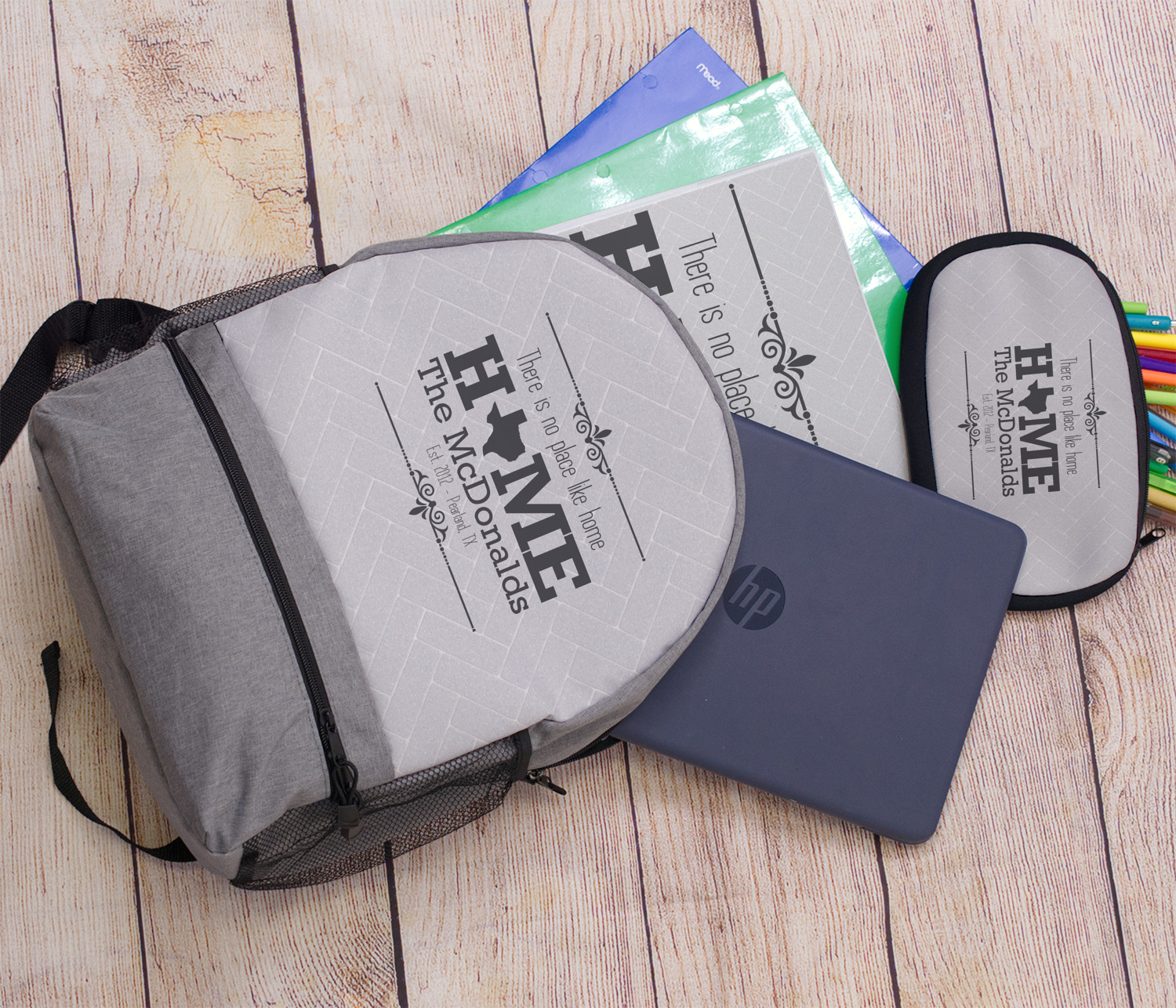 This design features a beatuiful graphic that spells out "Home" with your home state substituted for the "o". You are able to change the state to one of the 50 United States in our system. There is personalizable text above and below this with some ornate brackets on the top and bottom as well. The background is a subtle herringbone brick pattern that gives a nice homey touch. The color scheme is simply light and dark grey. This is the perfect design for home decor or a gift for a friend.