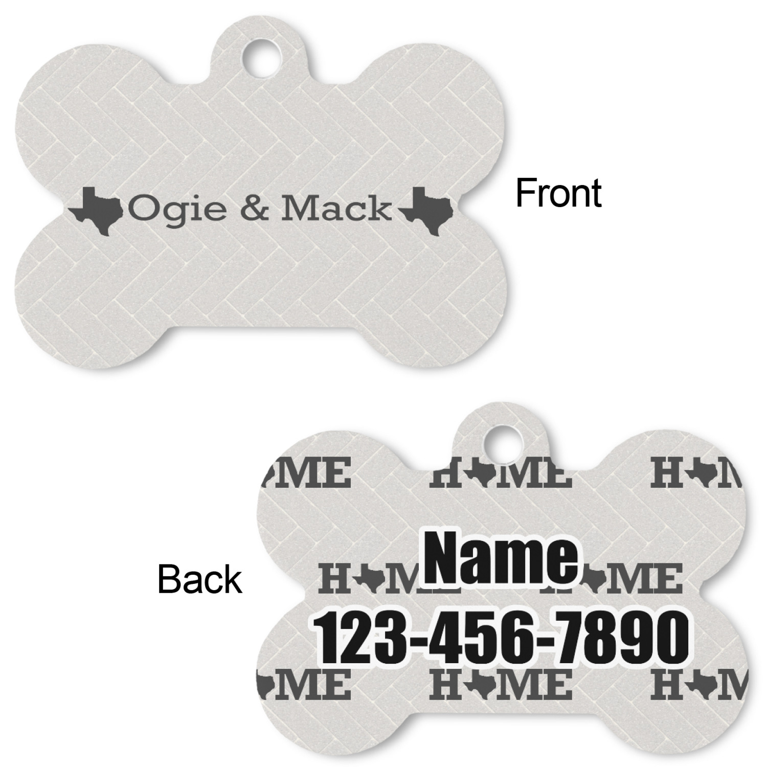 Shaped like a bone and made from aluminum, these tags are available in 2 different sizes.