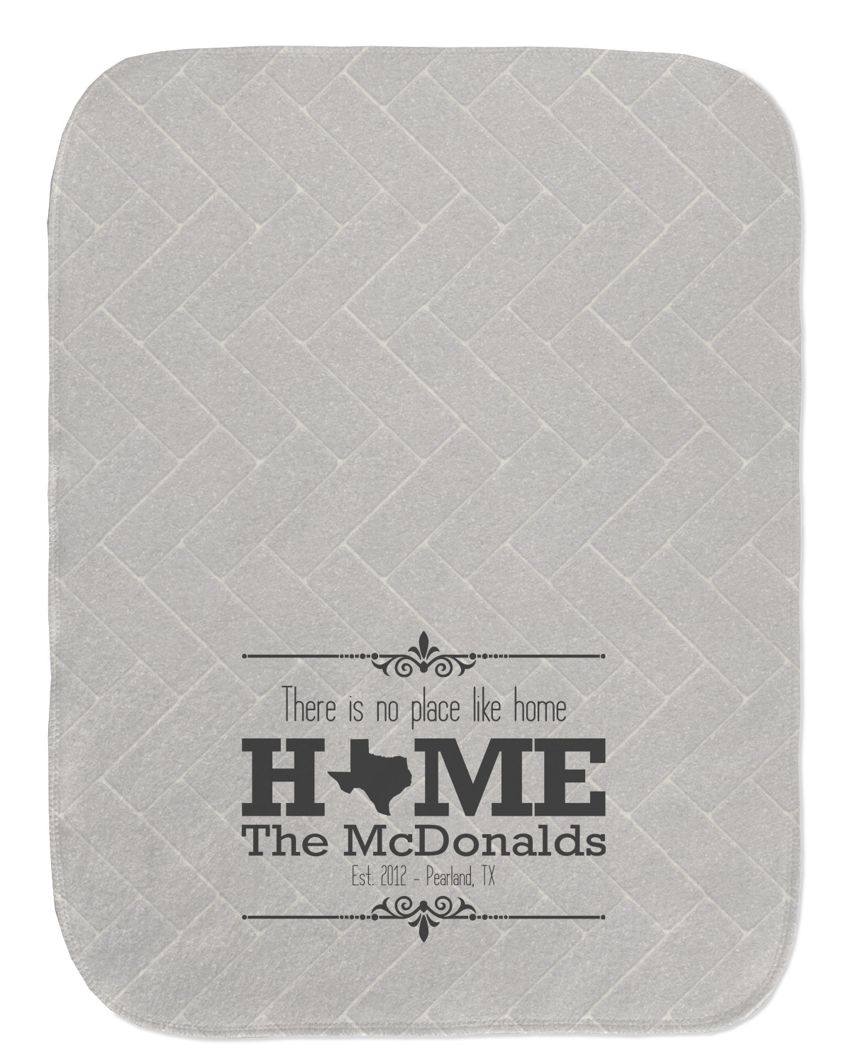 This design features a beatuiful graphic that spells out "Home" with your home state substituted for the "o". You are able to change the state to one of the 50 United States in our system. There is personalizable text above and below this with some ornate brackets on the top and bottom as well. The background is a subtle herringbone brick pattern that gives a nice homey touch. The color scheme is simply light and dark grey. This is the perfect design for home decor or a gift for a friend.