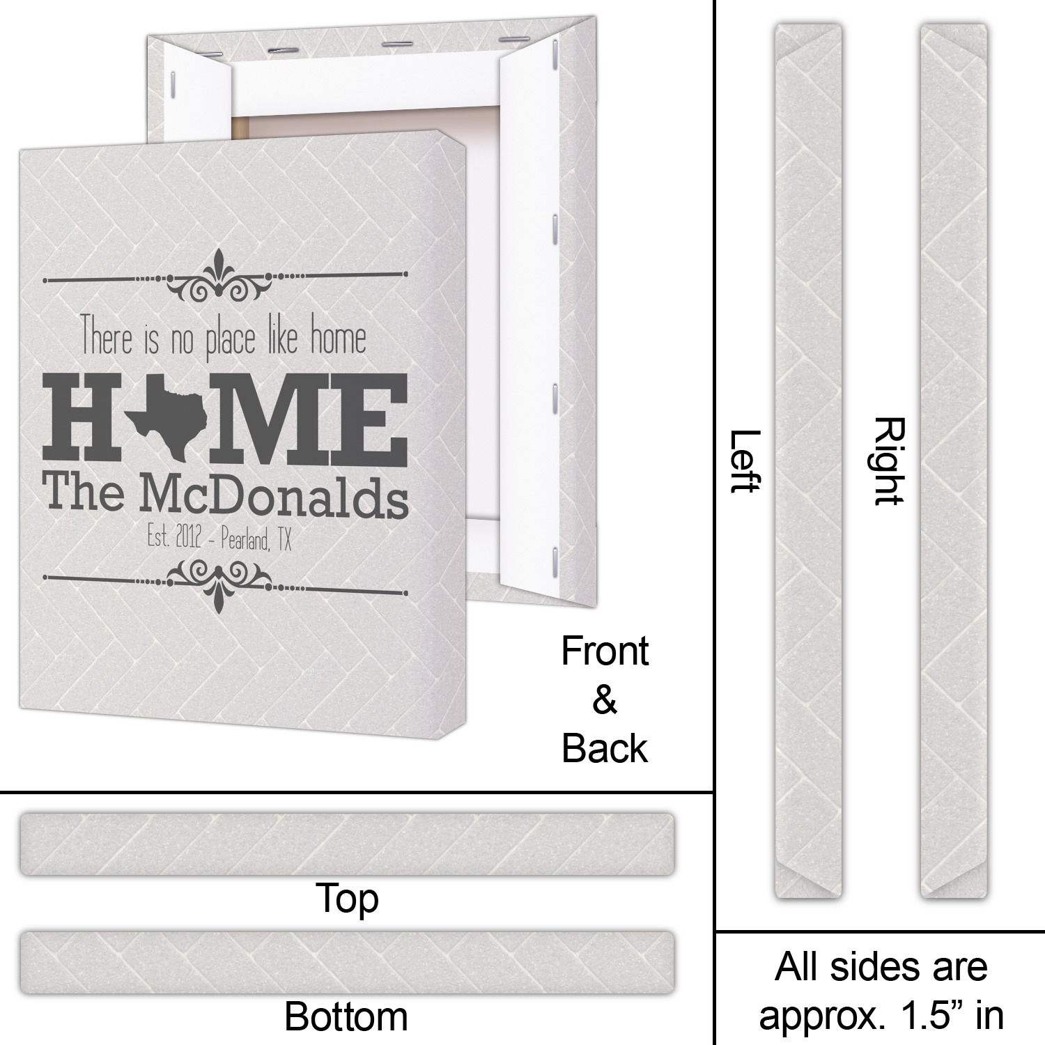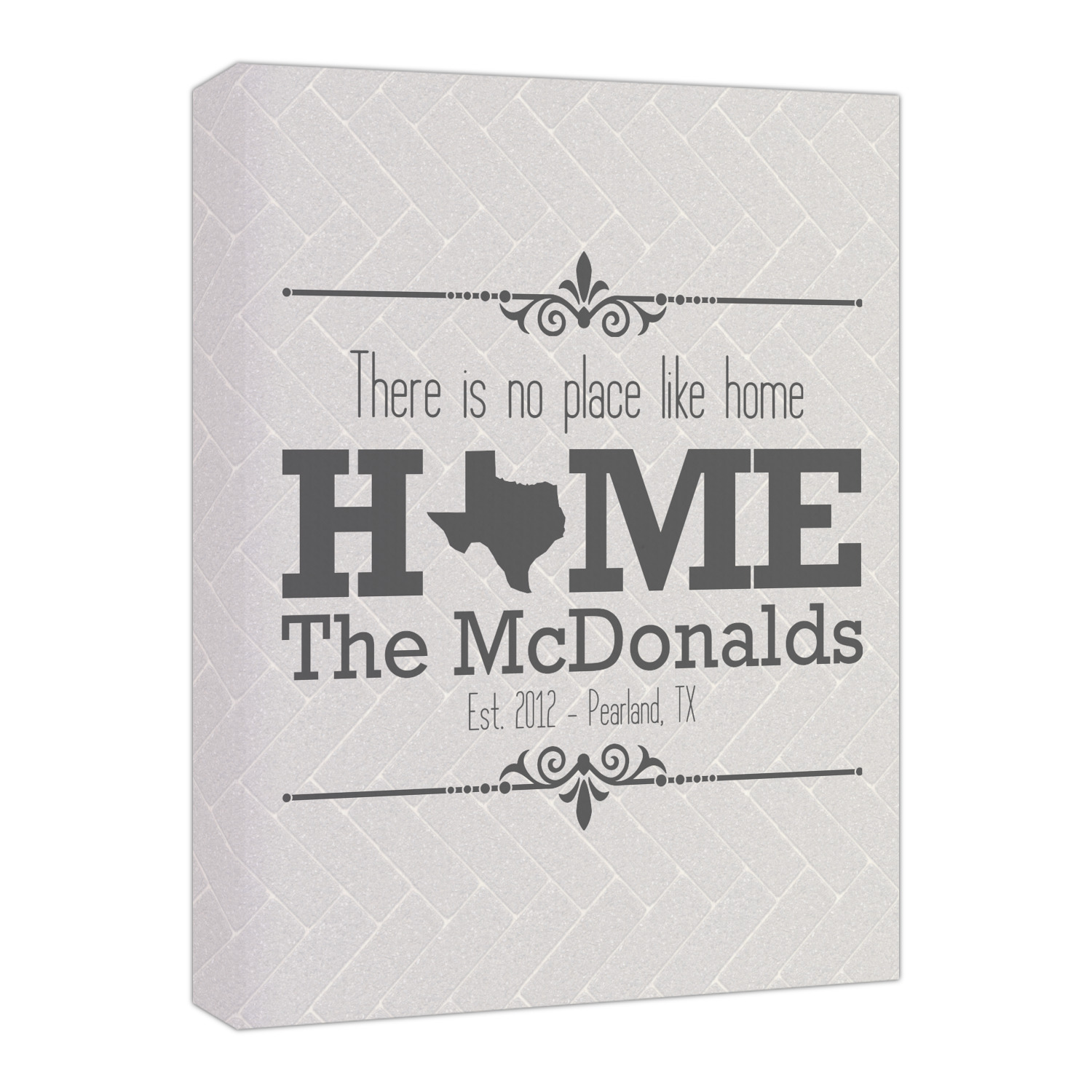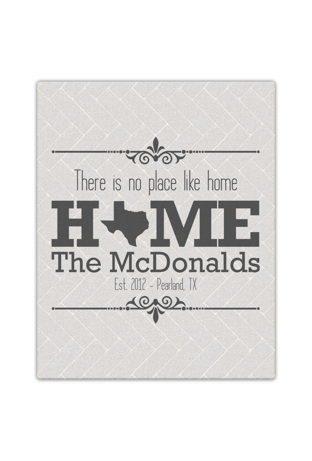 This design features a beatuiful graphic that spells out "Home" with your home state substituted for the "o". You are able to change the state to one of the 50 United States in our system. There is personalizable text above and below this with some ornate brackets on the top and bottom as well. The background is a subtle herringbone brick pattern that gives a nice homey touch. The color scheme is simply light and dark grey. This is the perfect design for home decor or a gift for a friend.
