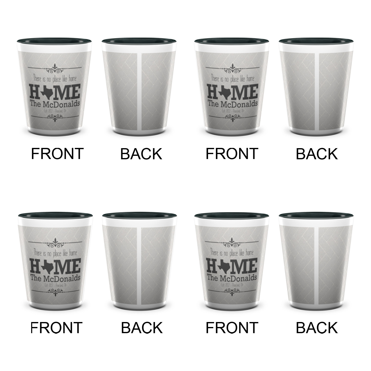 Made from ceramic these shot glasses are printed in full color with the design of your choice. These are a standard 1.5oz size and stand 2.25" tall. Available in a full white ceramic or a two-tone with a black color inside the shot glass. Buy a single or a set of 4, all of which can be designed separately to get you just what you want and need.