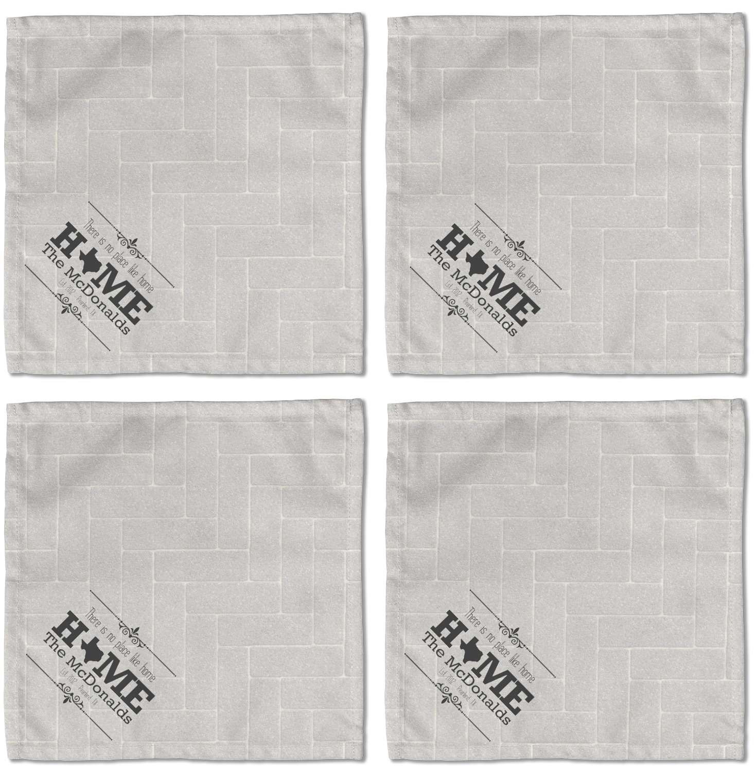 Each customizable cloth napkin is a polyester material guaranteed for long-term use. Since our napkins are cloth, it serves as a great reusable and eco-friendly dining decor. We sell personalized napkins individually or as a set of 4! Print your own unique design on all four napkins, or create four individual designs for each napkin! We offer two different napkin sizes - Cocktail napkins (approx. 10 x 10) and Dinner napkins (approx. 20 x 20). We print your design on one side, perfect for displaying your custom designed lunch napkins in any fold or table setting!