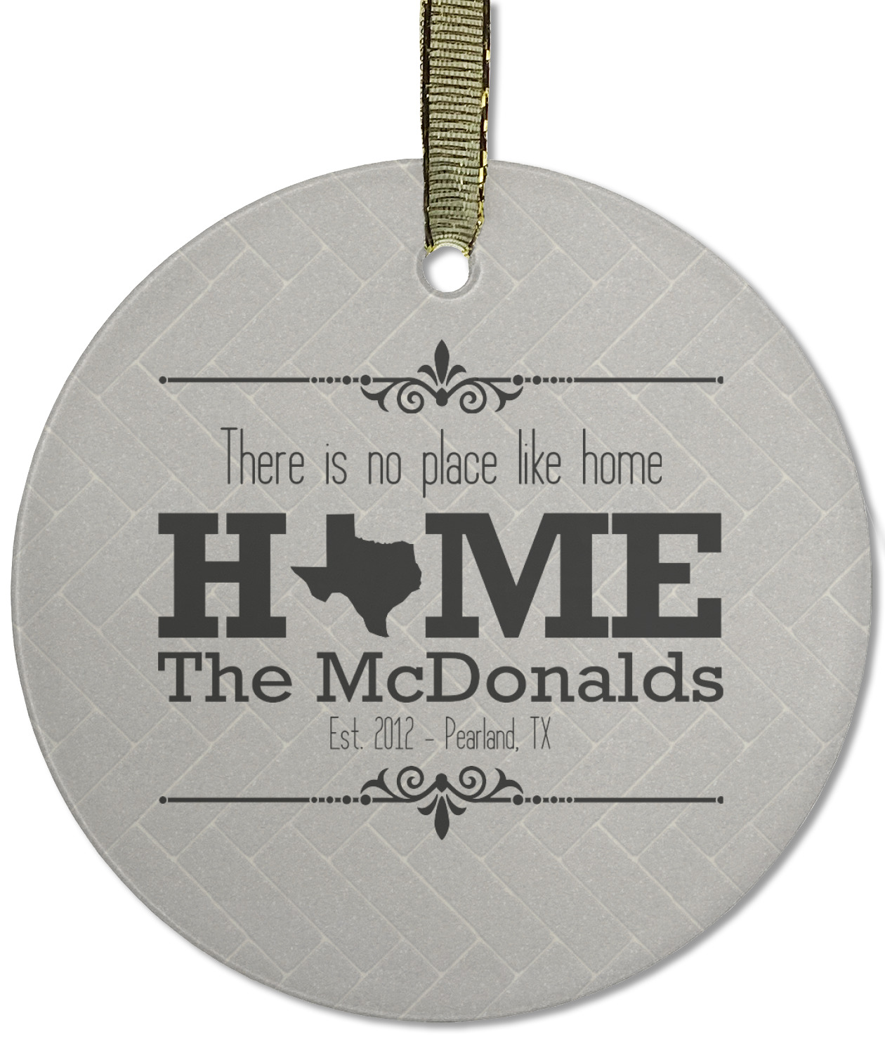 Each of our flat glass ornaments come with a gold string to hang on your Christmas tree with style! We offer two different shapes - flat, round ball or a hexagon. Both glass ornaments have a frosted coating on one side where we print your design while the other side is a clear gloss to give your personalized ornament a sheen finish. Our flat round glass ornament is approximately 3.5" x 3.5" while the flat hexagon ornaments are approximately 3.5" x 3".