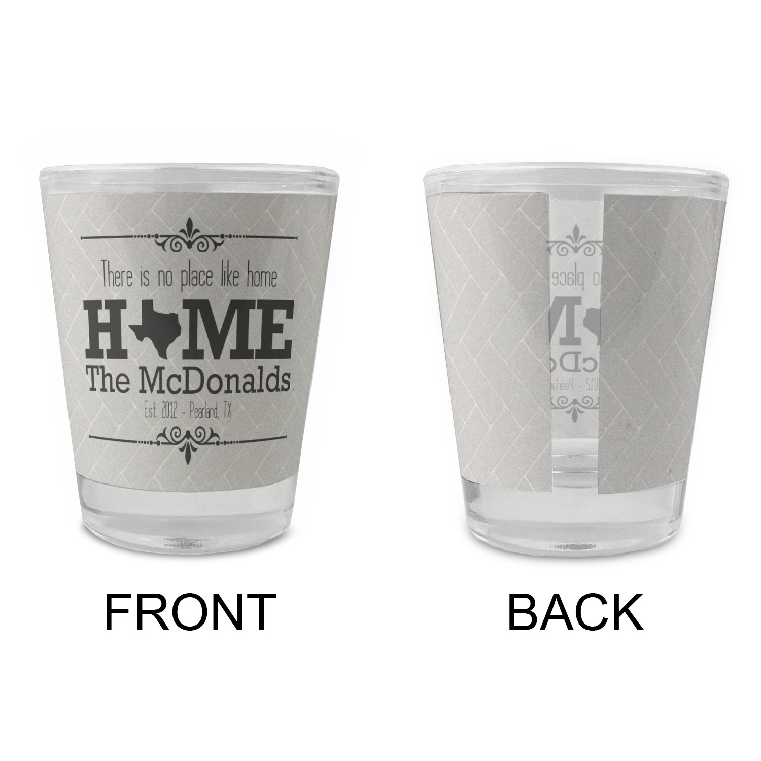 Made with frosted glass, these shot glasses are printed in full color with the design of your choice. They are a standard 1.5oz shot glass and are 2.4" tall. The print is wrapped around the shot glass in a full wrap and boldly displays your customization.