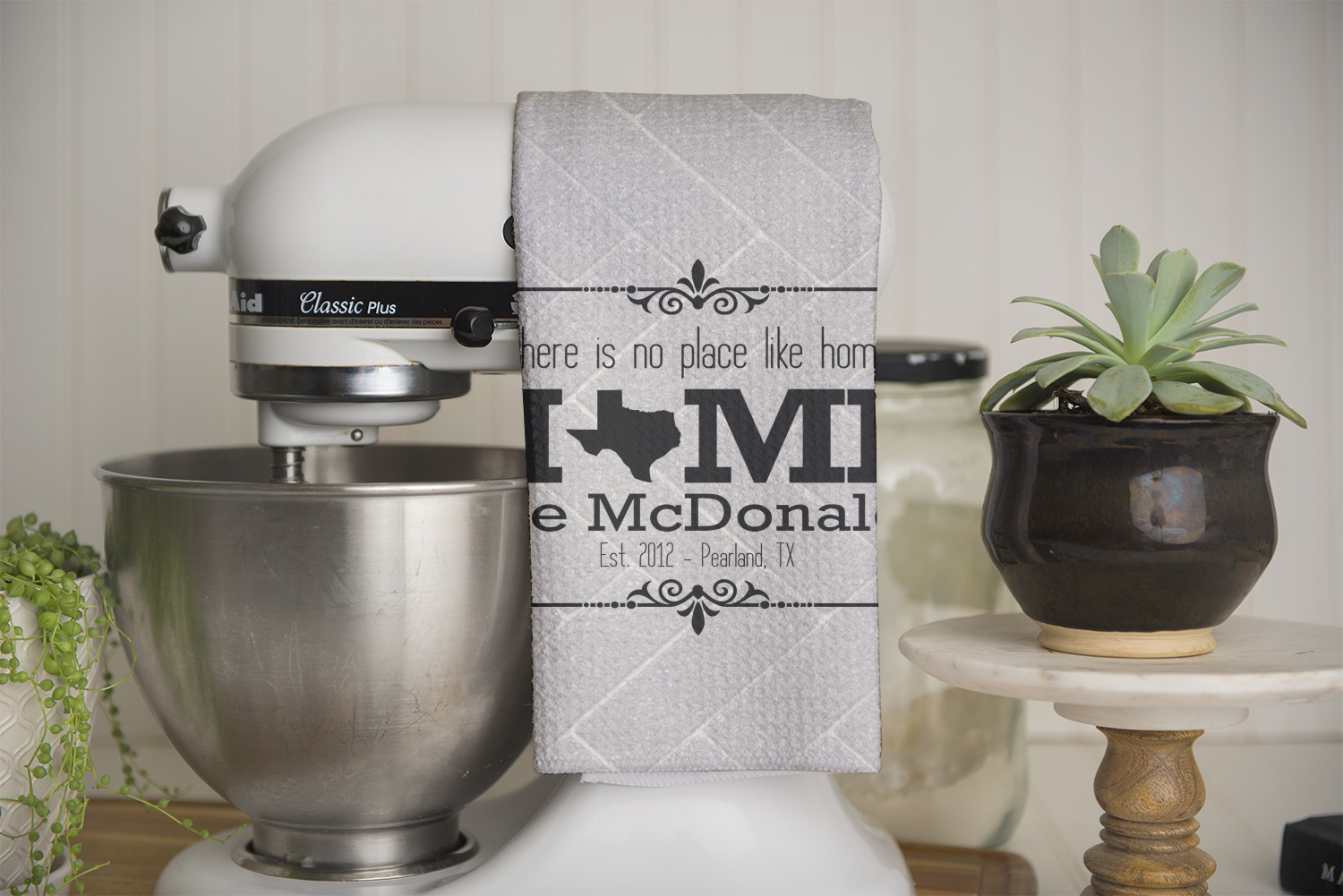 Personalized kitchen towels are pretty and practical kitchen décor accents ideal for holiday dinners and other special occasions! Customize one of our many designs or create your own with our custom design template.