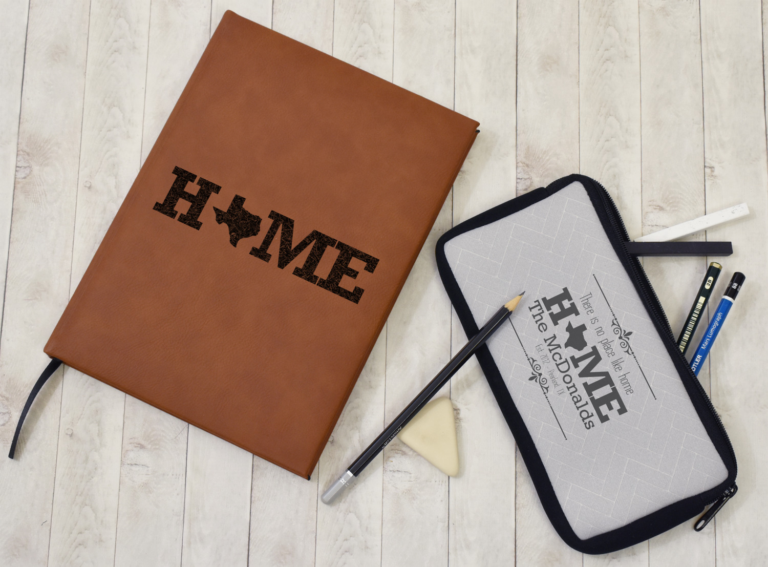 The faux leather covers are a rich cognac / rawhide color and can be customized with your design. From a simple name or monogram or a logo to a detailed mandala - the choice for customization & personalization is truly yours. Customize one of our designs or upload your own.