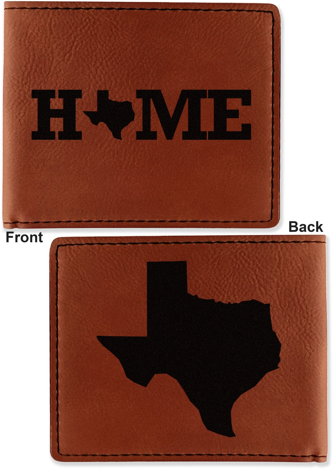 Your bifold wallet will be personalized by laser engraving, which will be a black color on the wallet. Choose a graphic, text, or monogram to personalize your wallet. There are thousands of choices in our design center.