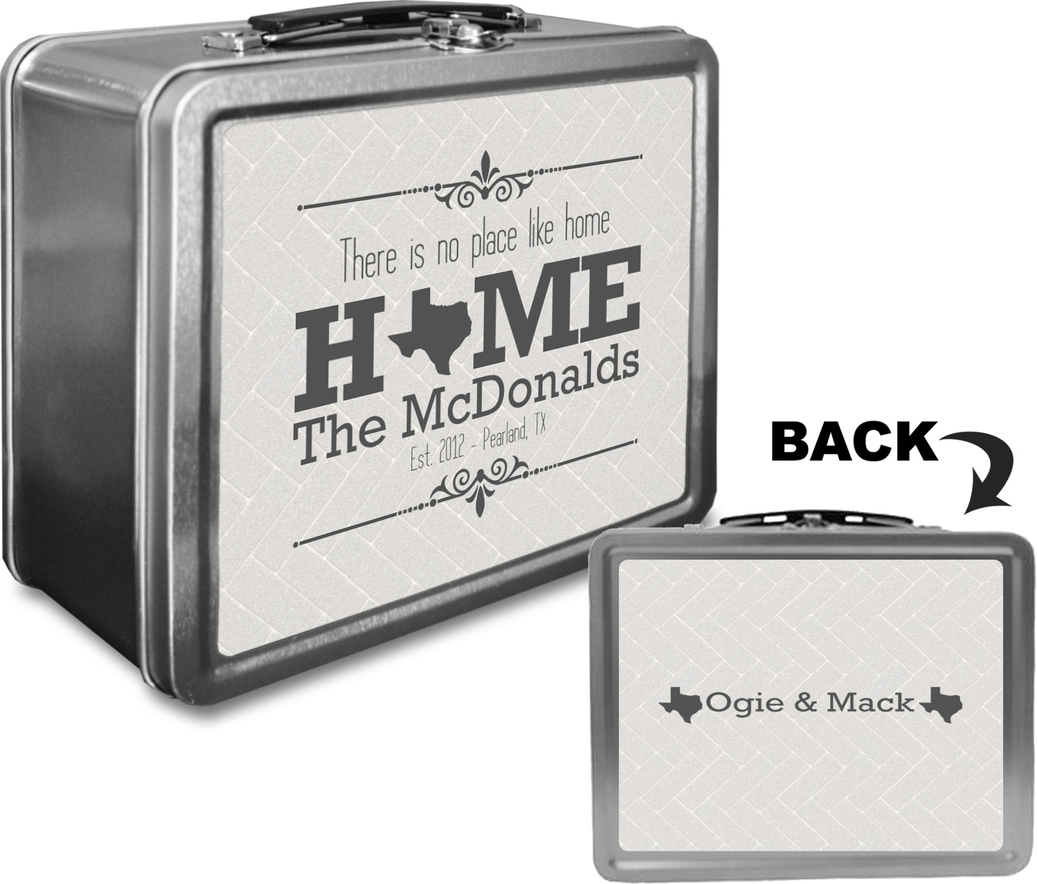 When customized, these boxes can also serve as a unique keepsake box! We print your design on both the front and back of this box, using a high quality matte vinyl, with waterproof inks that withstand the test of time. The designs are then machine cut, and adhered to the sides of the metal lunch container.
