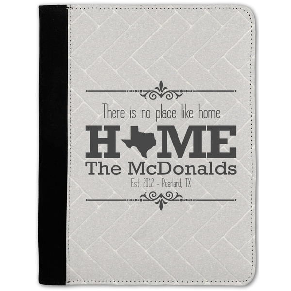 These personalized padfolios are made from a black, polyester microfiber and features a standard, 50-page notepad. However, these black padfolios can accommodate a pad with up to 100 pages. This model also features a slot pocket for any loose sheets of paper, small pockets for business cards, and an elastic band to secure a pen. We print your personalization across the front of this notepad portfolio in bright, vibrant color. These padfolios come in 2 sizes, Medium - approximately 10.25" x 8" for 5" x 8" paper and Large - approximately 12.5" x 8.5" for 8.5" x 11" paper.