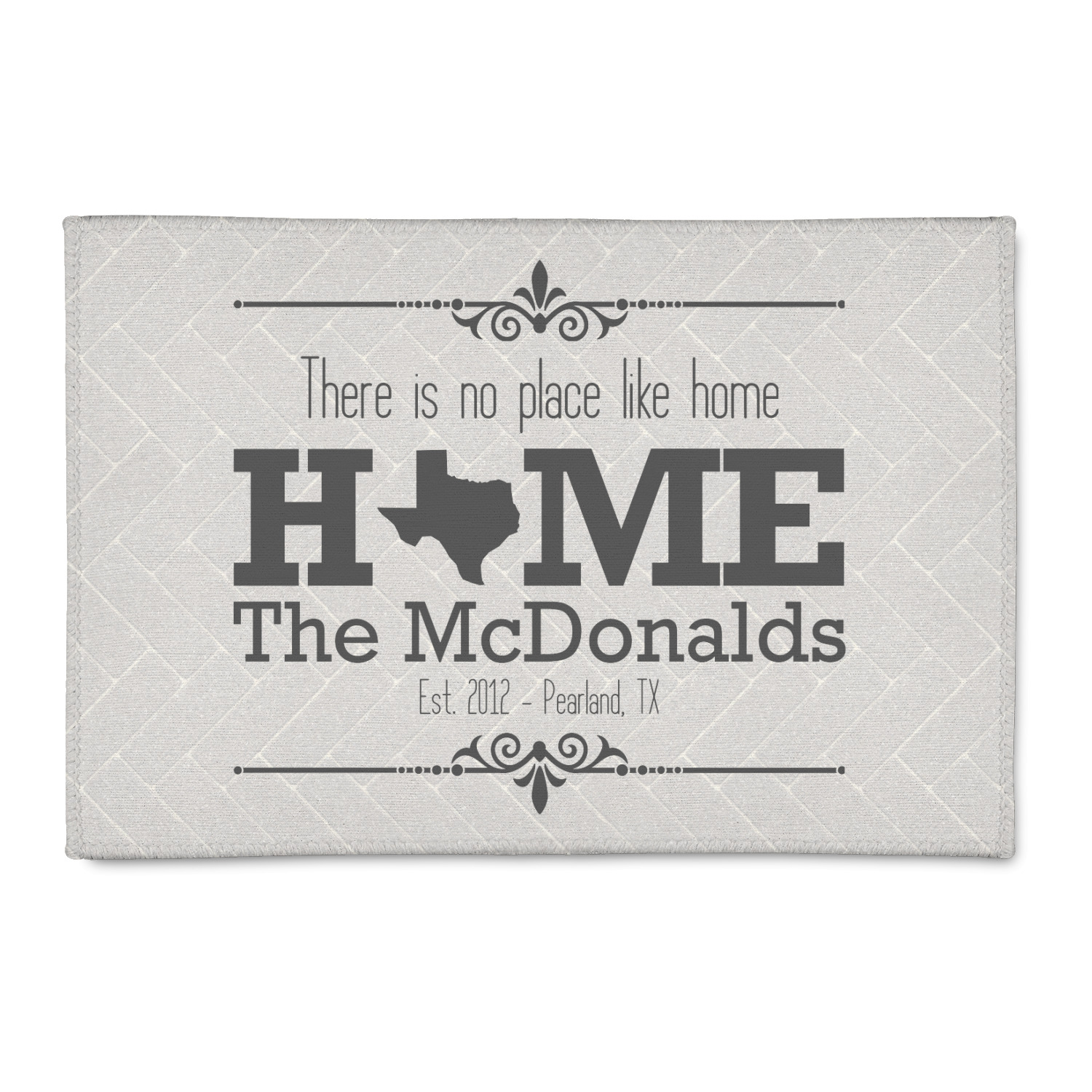 This design features a beatuiful graphic that spells out "Home" with your home state substituted for the "o". You are able to change the state to one of the 50 United States in our system. There is personalizable text above and below this with some ornate brackets on the top and bottom as well. The background is a subtle herringbone brick pattern that gives a nice homey touch. The color scheme is simply light and dark grey. This is the perfect design for home decor or a gift for a friend.