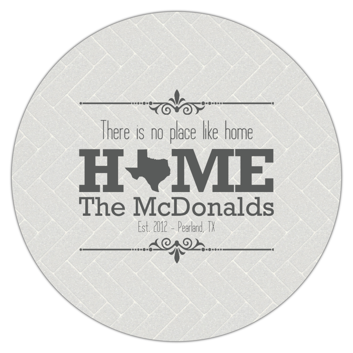 This design features a beatuiful graphic that spells out "Home" with your home state substituted for the "o". You are able to change the state to one of the 50 United States in our system. There is personalizable text above and below this with some ornate brackets on the top and bottom as well. The background is a subtle herringbone brick pattern that gives a nice homey touch. The color scheme is simply light and dark grey. This is the perfect design for home decor or a gift for a friend.